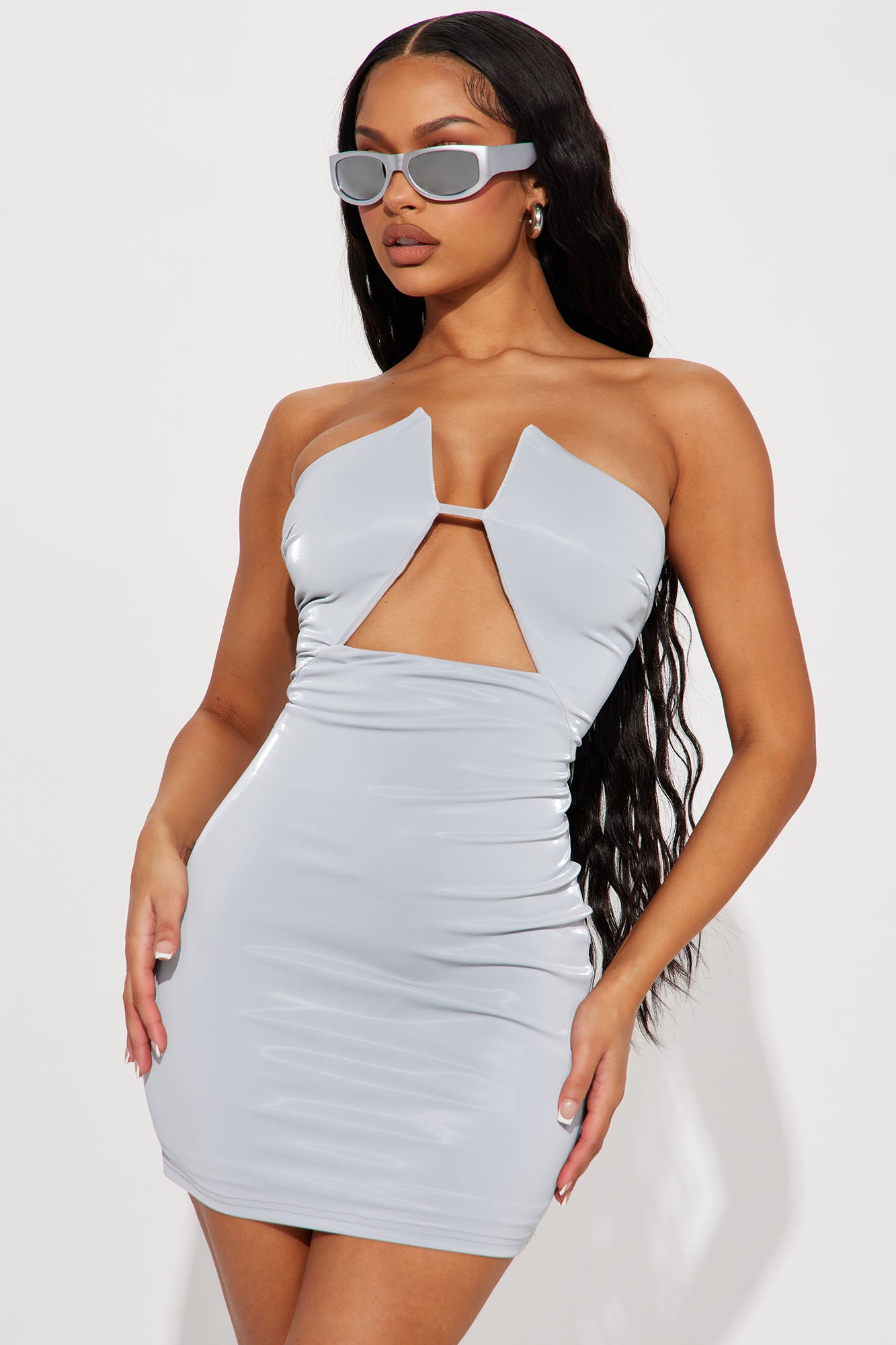Lena Faux Leather Mini Dress - Grey