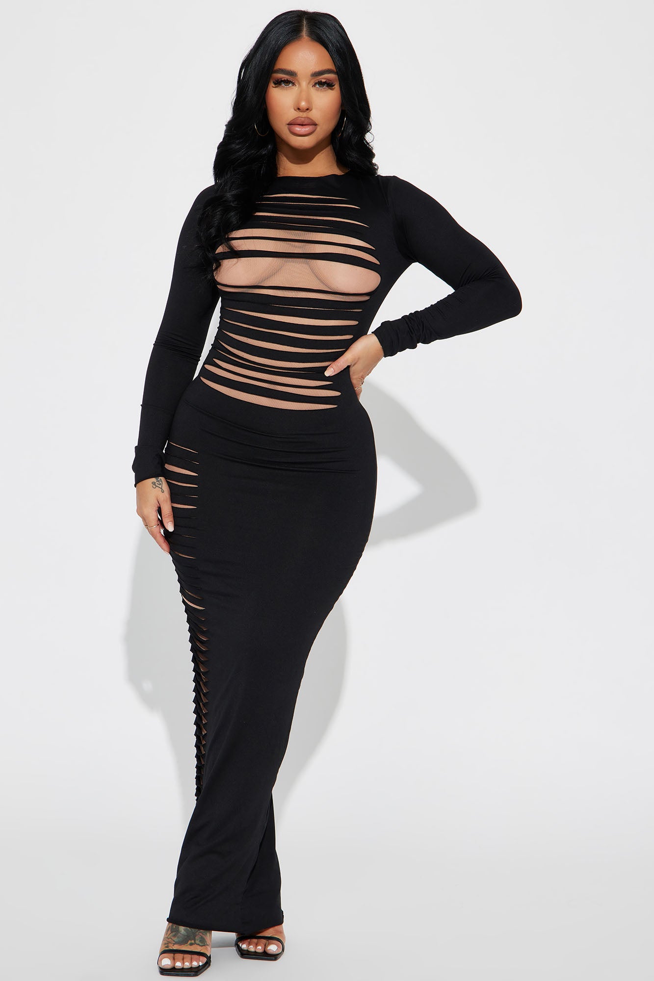 Next Level Distressed Maxi Dress - Black/combo