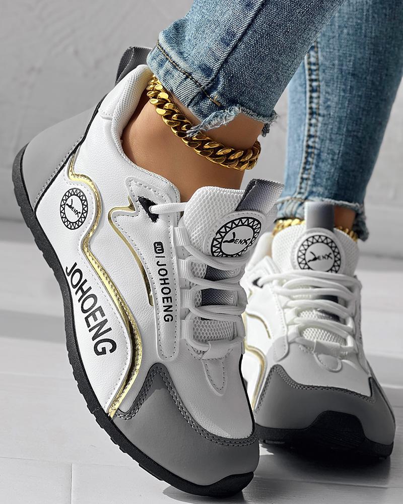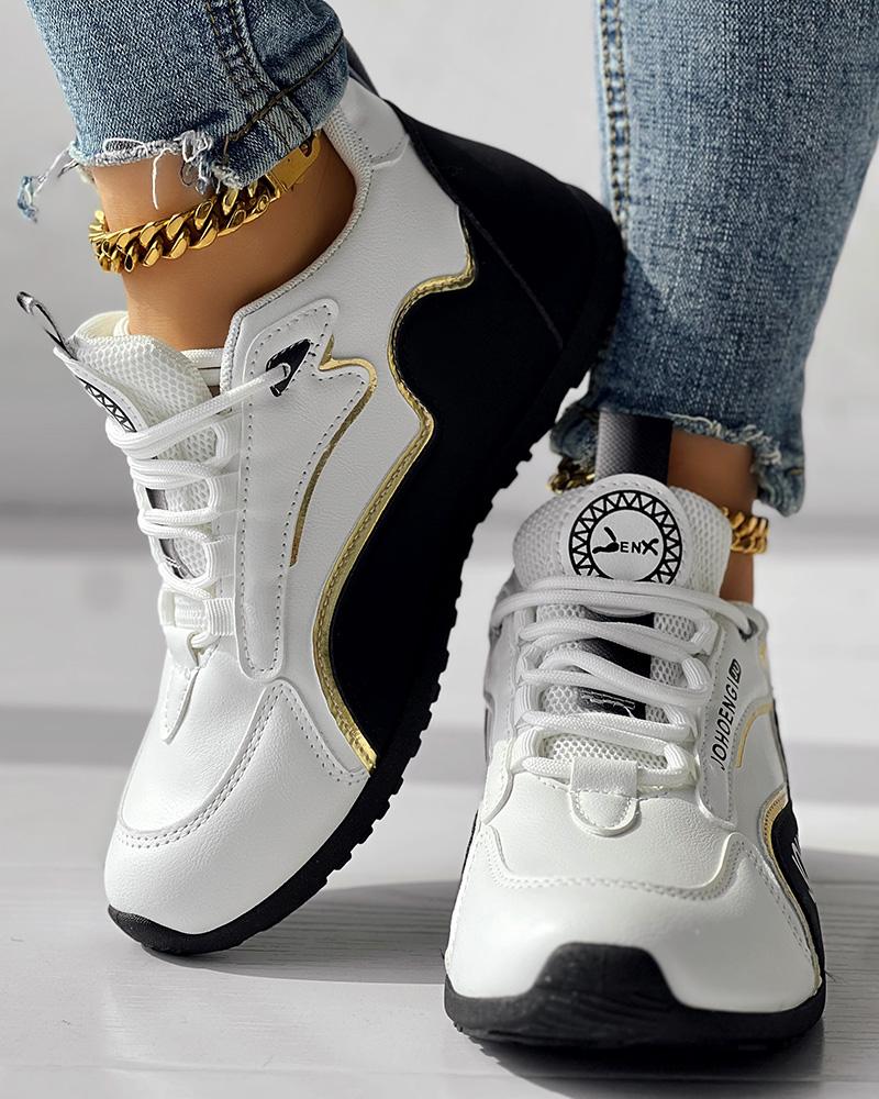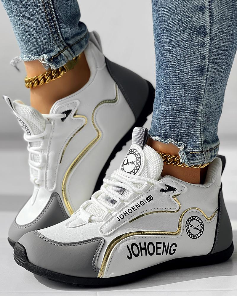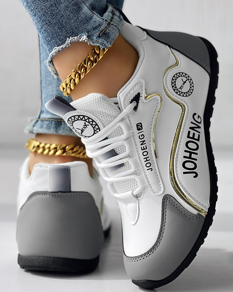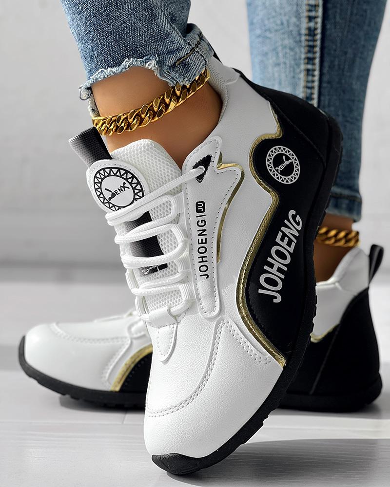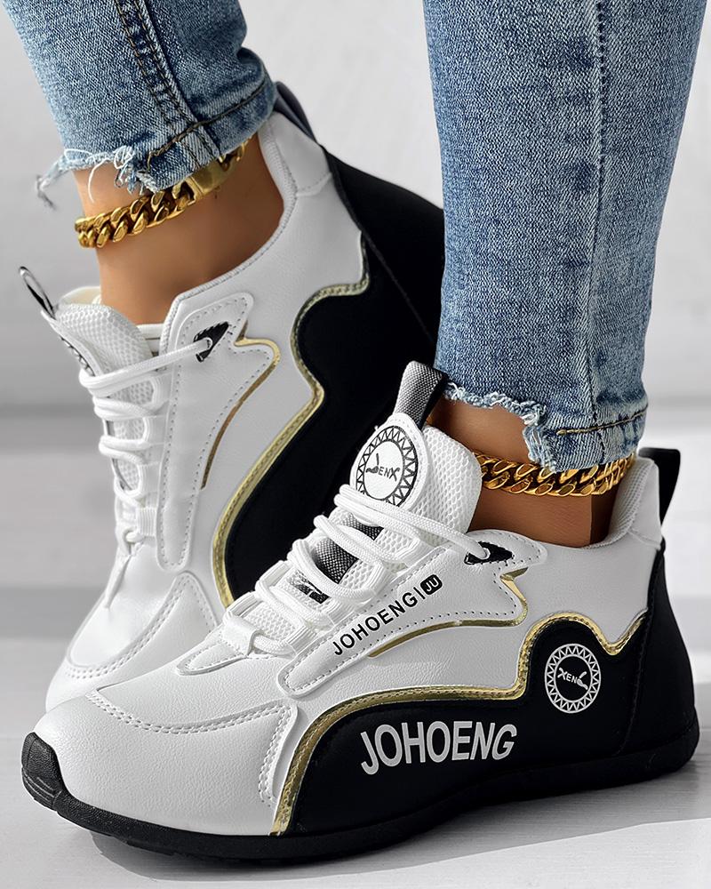 • Colorblock Letter Print Lace-up Platform Casual Sneakers