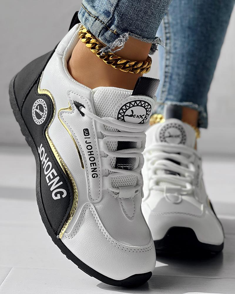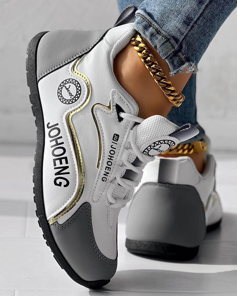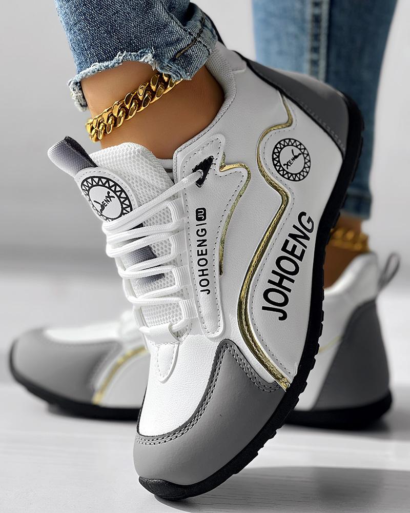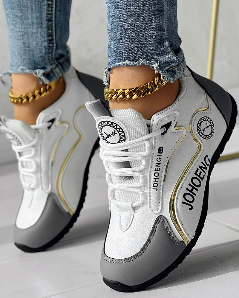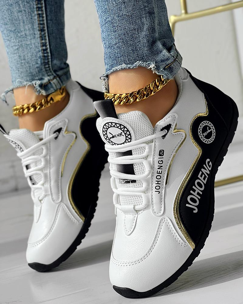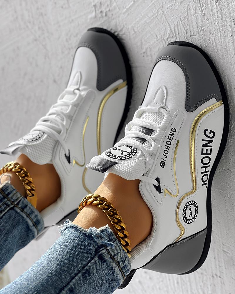 • Colorblock Letter Print Lace-up Platform Casual Sneakers