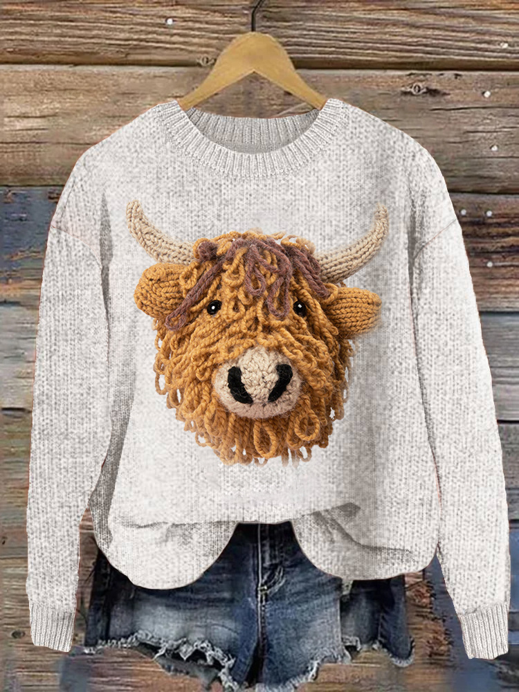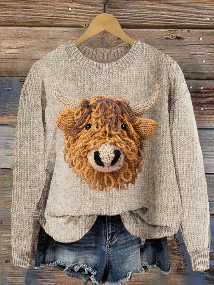 Highland Cow Casual Cozy Knit Sweater