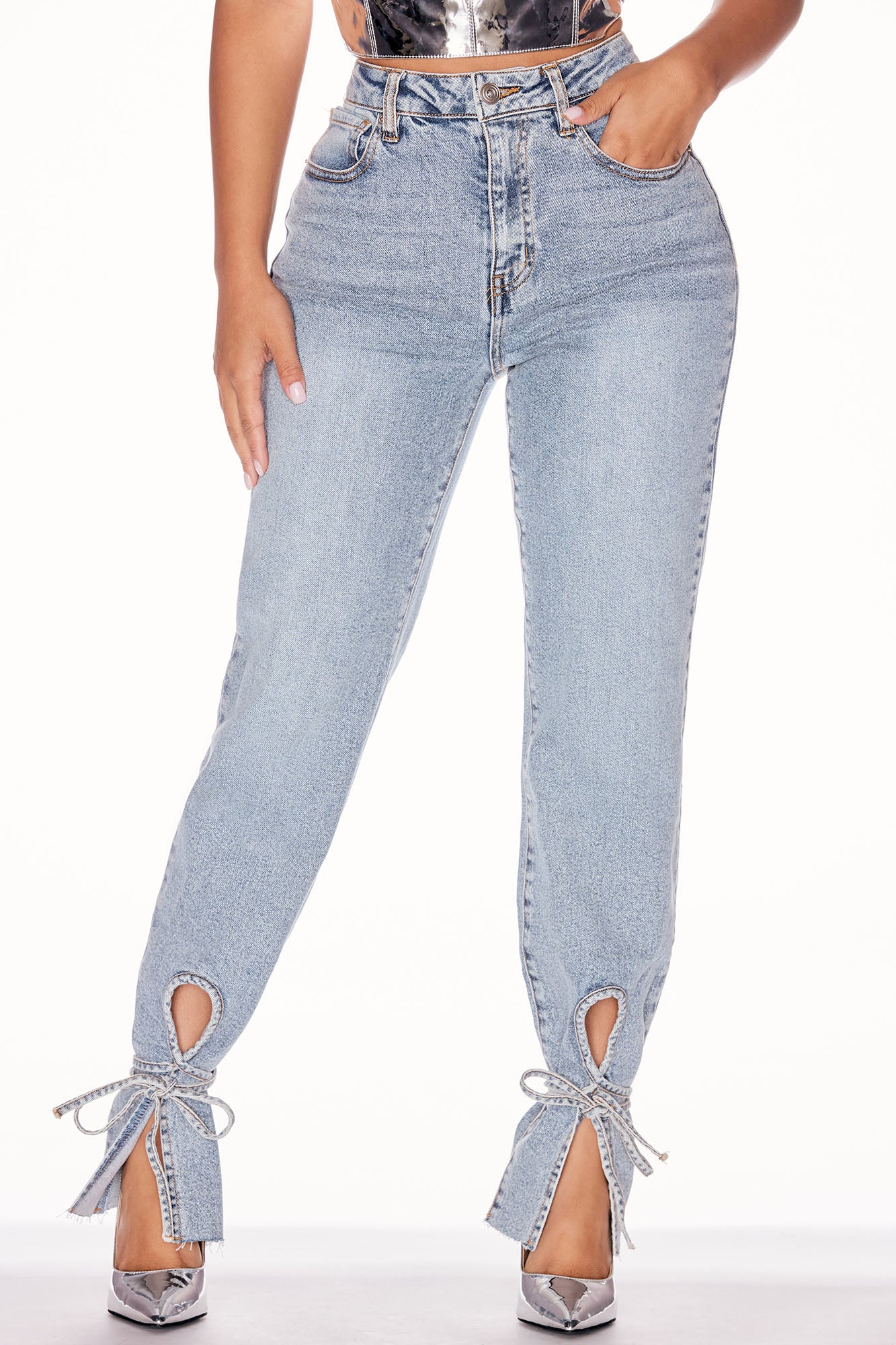 Petite All Tied Up Straight Leg Jeans - Medium Wash