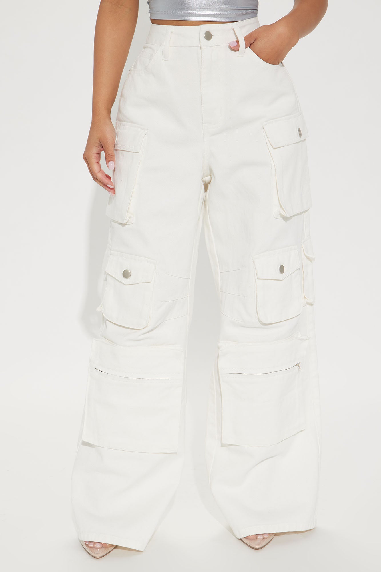 Petite Lily High Rise Cargo Jeans - White
