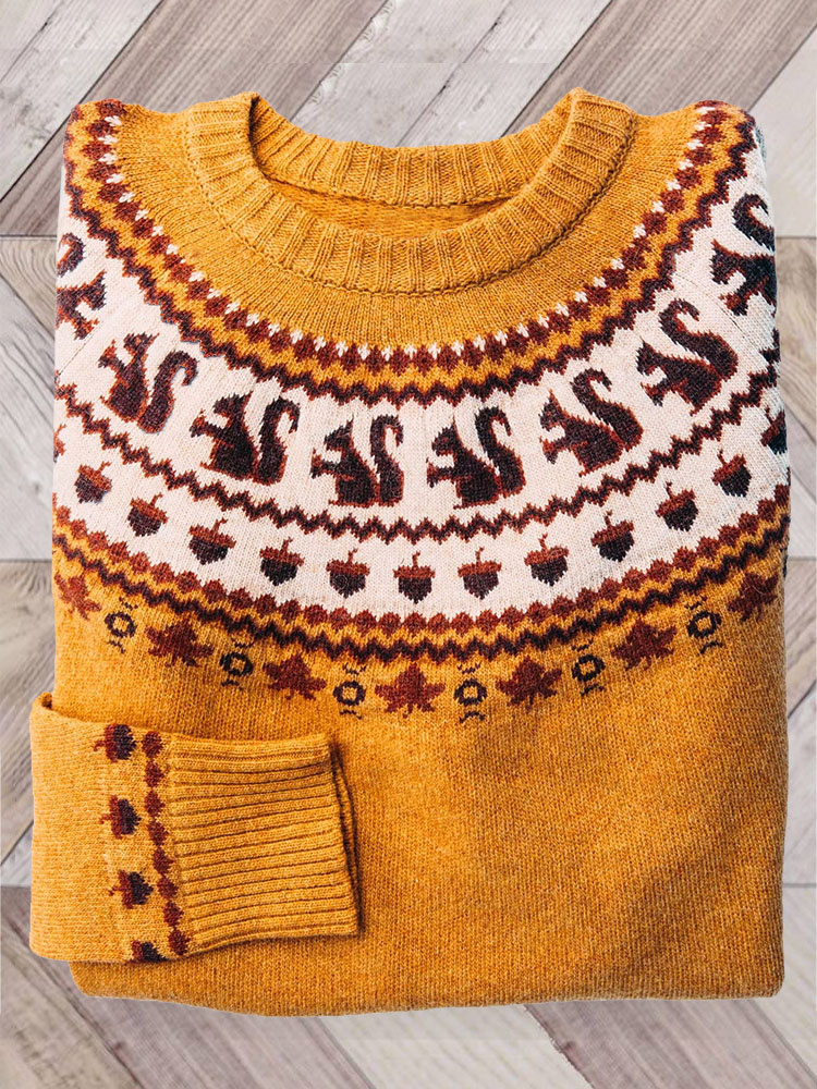 Autumn and Winter Cute Squirrel Print Casual Sweater