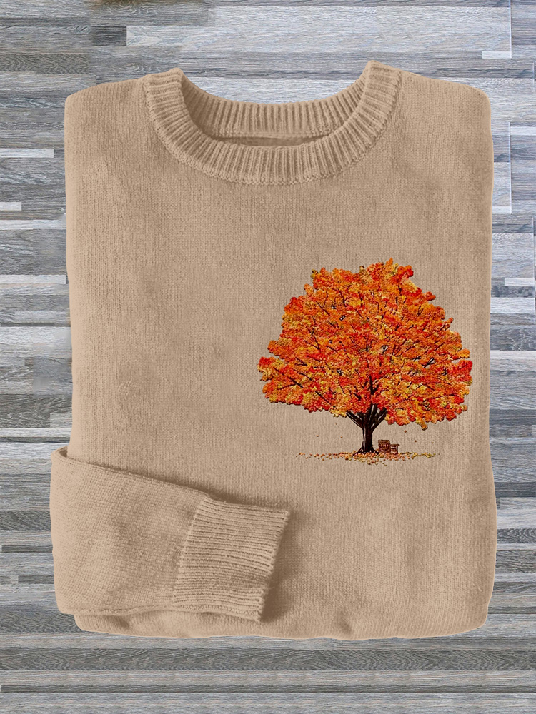 • Autumn Tree Embroidery Art Comfy Knit Sweater