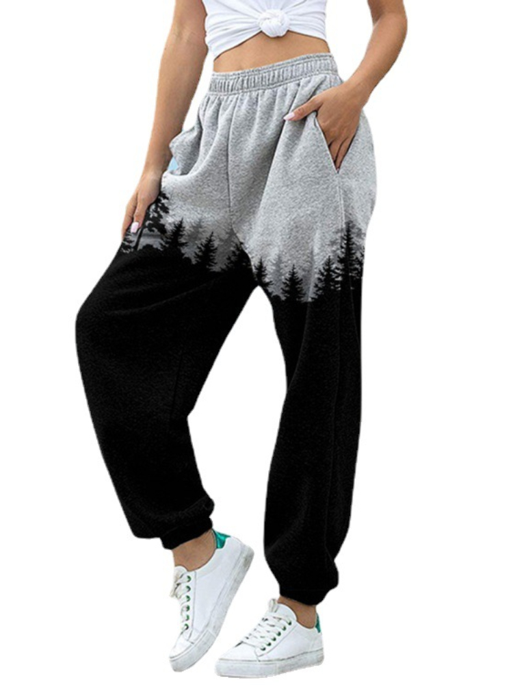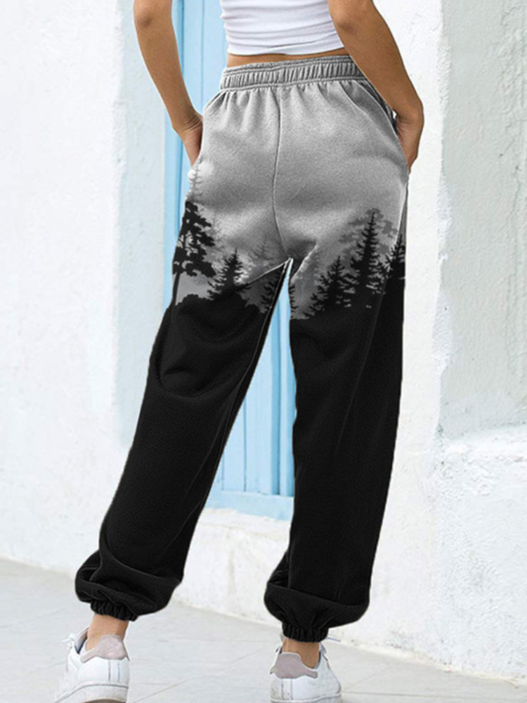 • Black Forest Art Painting Elastic Waist Casual Pants
