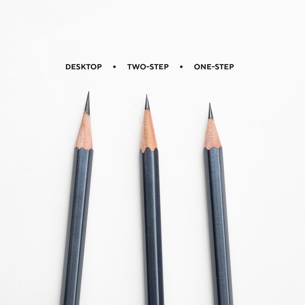 The Blackwing Desktop Pencil Sharpener uses a helix blade to sharpen your pencils to perfection. The dial on the crank allows you to adjust the point from long and curved to short and blunt. Its unique sharpening system retracts the pencil automatically without scuffing the finish, and it includes an automatic brake to prevent over-sharpening and wasting the lead. The sharpener is cased in a durable matte black metal and polymer shell that looks sleek and feels substantial. It also has a drawer to empty the shavings that locks into place with a satisfying click.