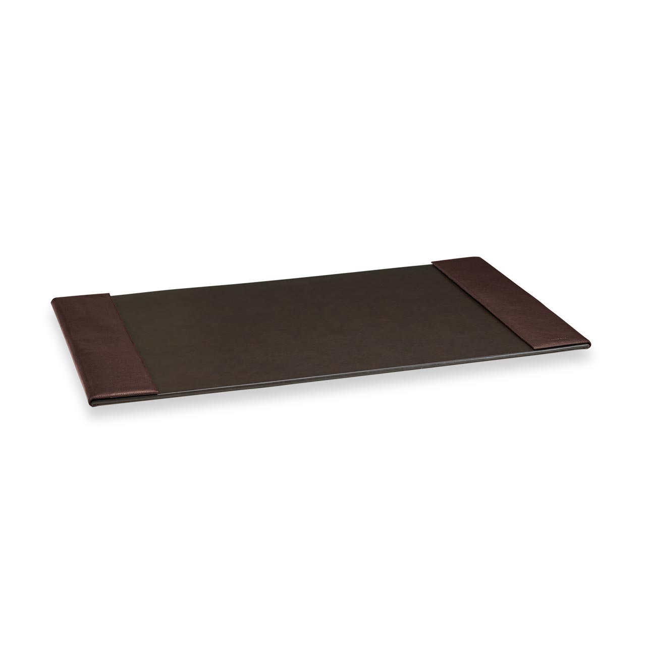 A distinctive desk mat for larger desks. Our Bomber Jacket leather makes durable deskware and helps keep your workspace beautifully organized. The fold-up wings on either side offer card storage underneath: the left side can hold 15 business cards, and the right side 10 3 x 5 index cards. The smooth writing surface can be used with or without blotter paper, and the felt bottom protects your desk.