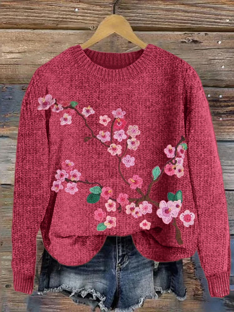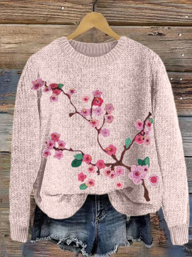 Cherry Blossom Crochet Art Cozy Knit Sweater