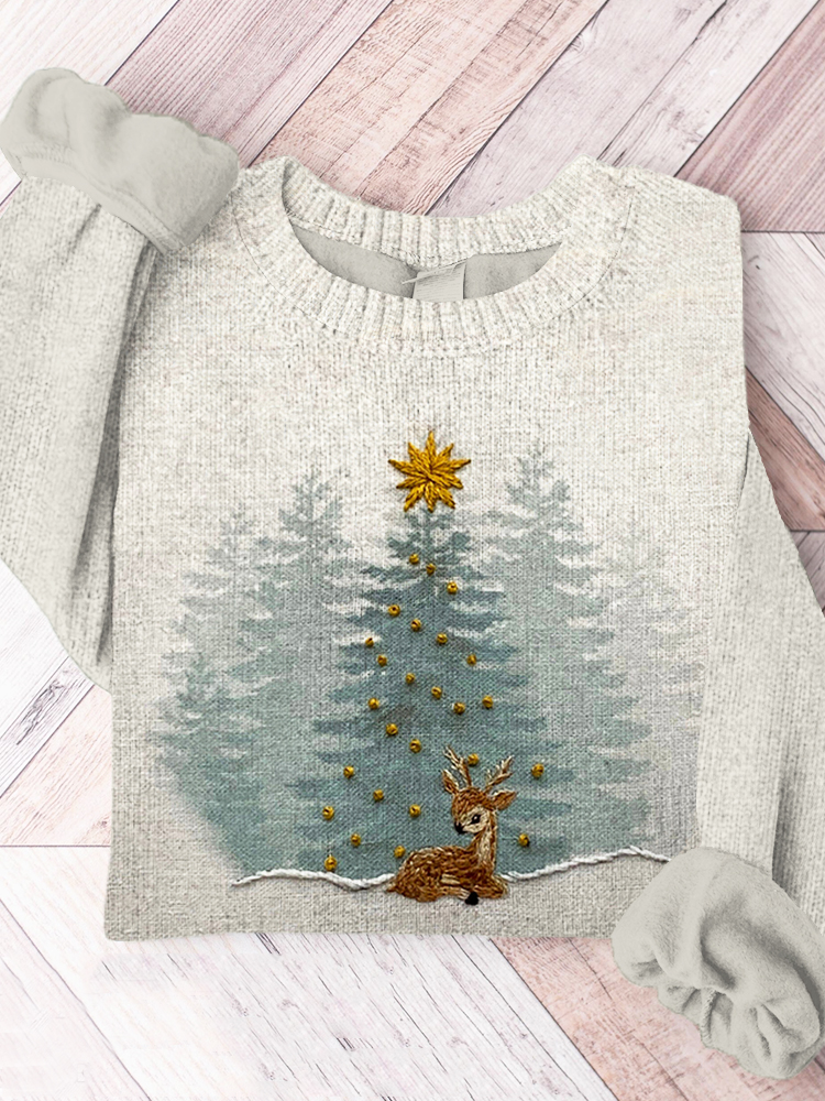 • Christmas Deer Embroidery Art Cozy Knit Sweater