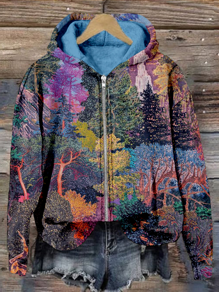• Colorful Forest Graphic Zip Up Comfy Hoodie