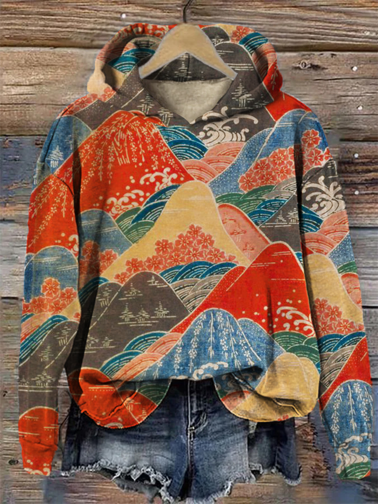 Colorful Mountains Landscape Japanese Art Cozy Hoodie
