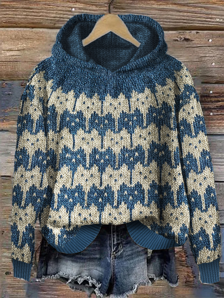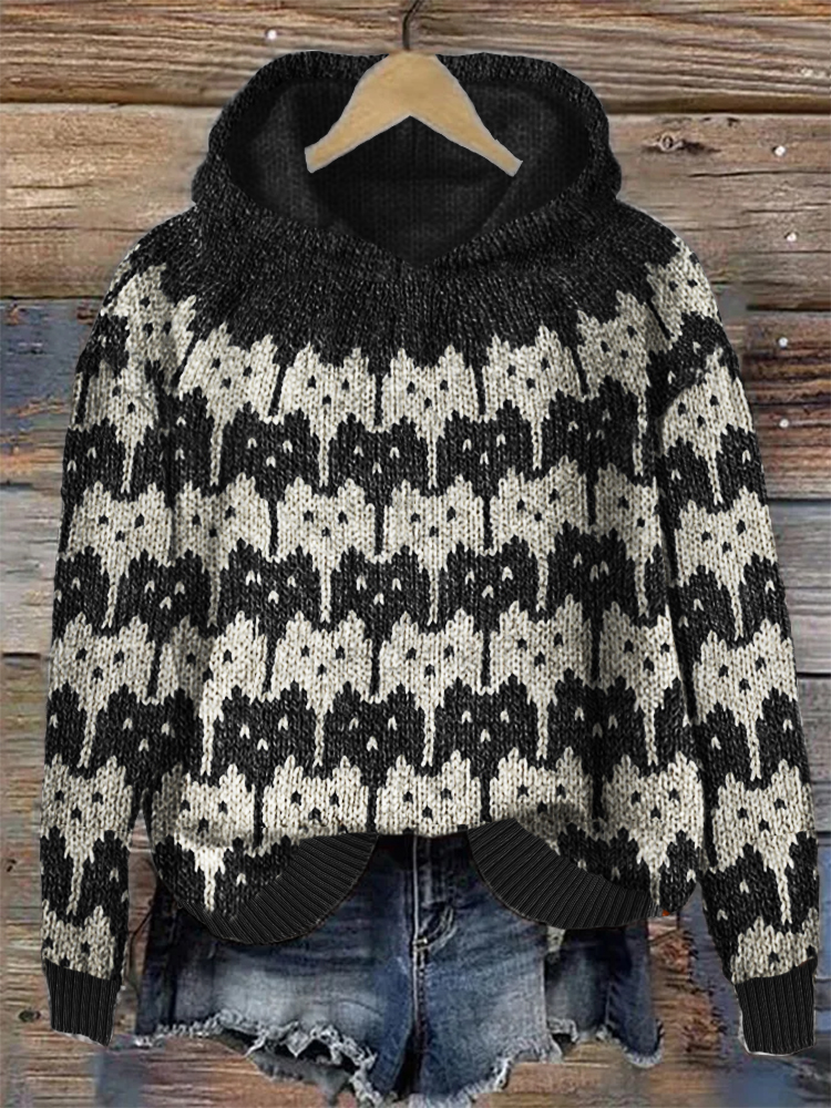 • Crowded Cats Contrast Art Cozy Knit Hoodie