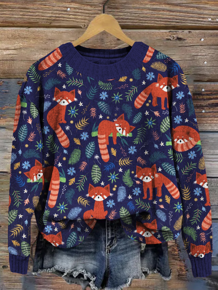• Cute Red Panda Graphic Cozy Knit Sweater