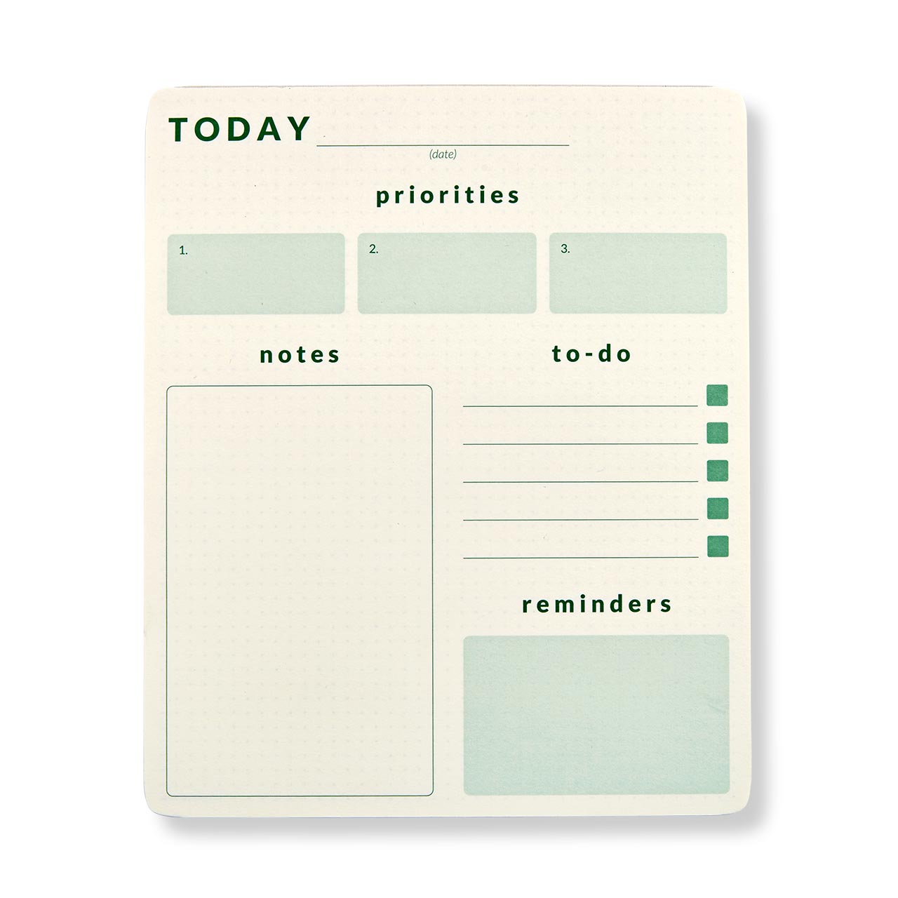 Plan out your days, weeks and months to the letter on these handy desk pads, undated so you can start anytime and printed in soft shades of green on warm cream paper. The Daily pad has space for priorities, notes, reminders and to-dos. The Weekly pad has space for planning each day of the week, a to-do checklist and notes. The undated Monthly pad has a Sunday-Saturday layout.