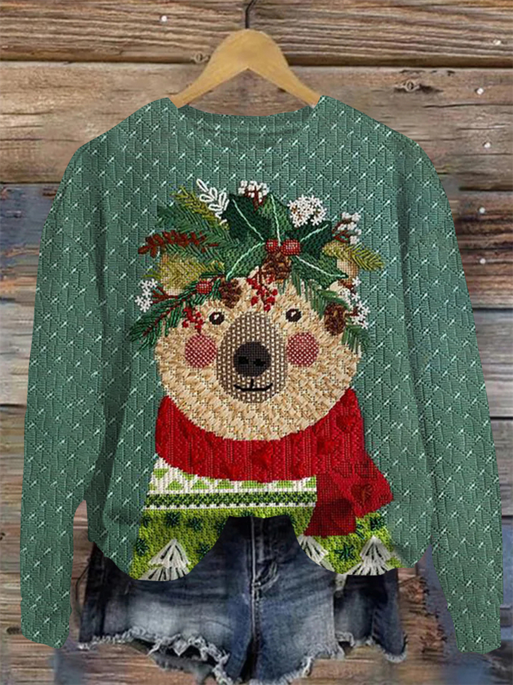 • Floral Bear Embroidery Print Sweatshirt