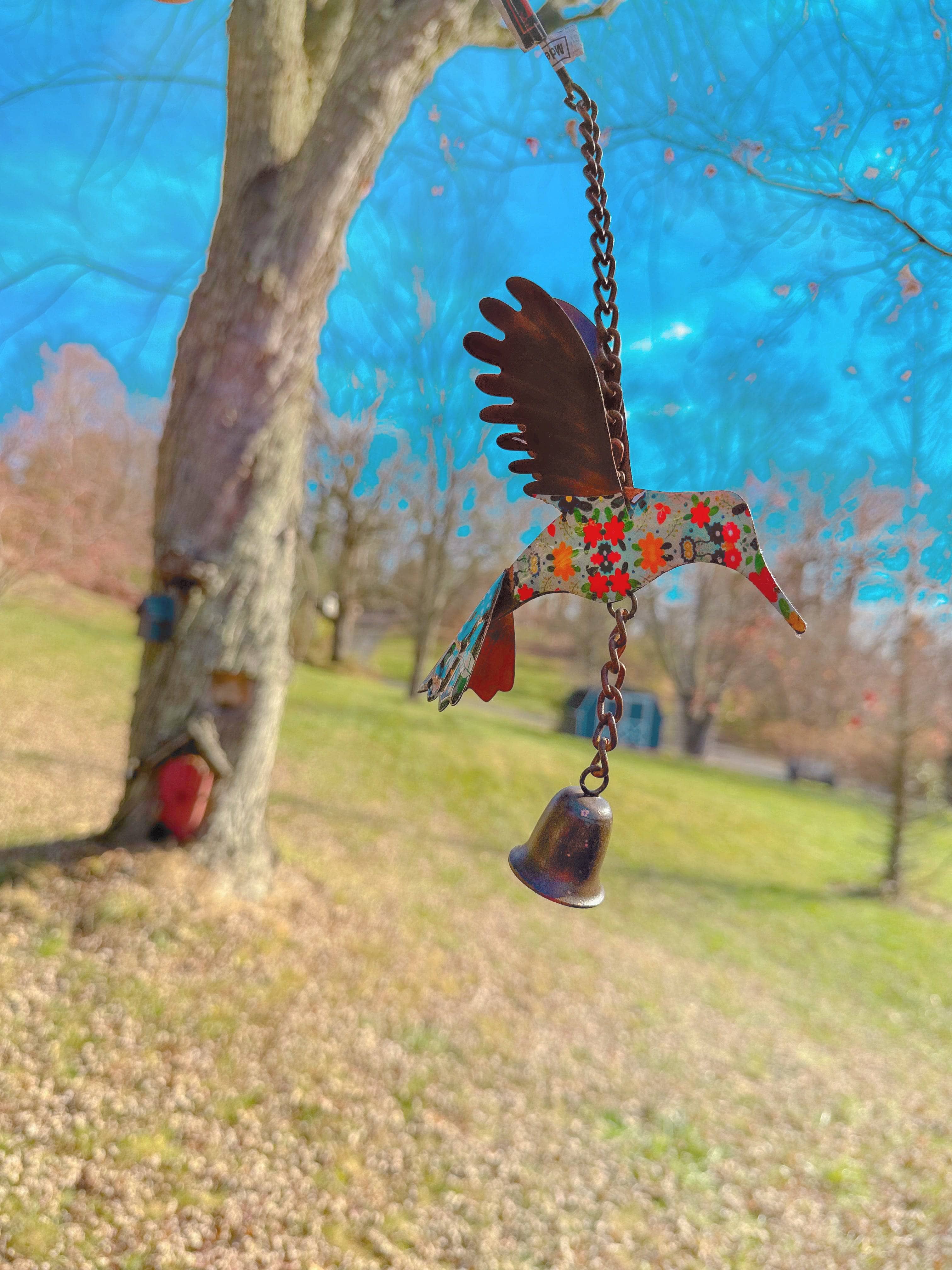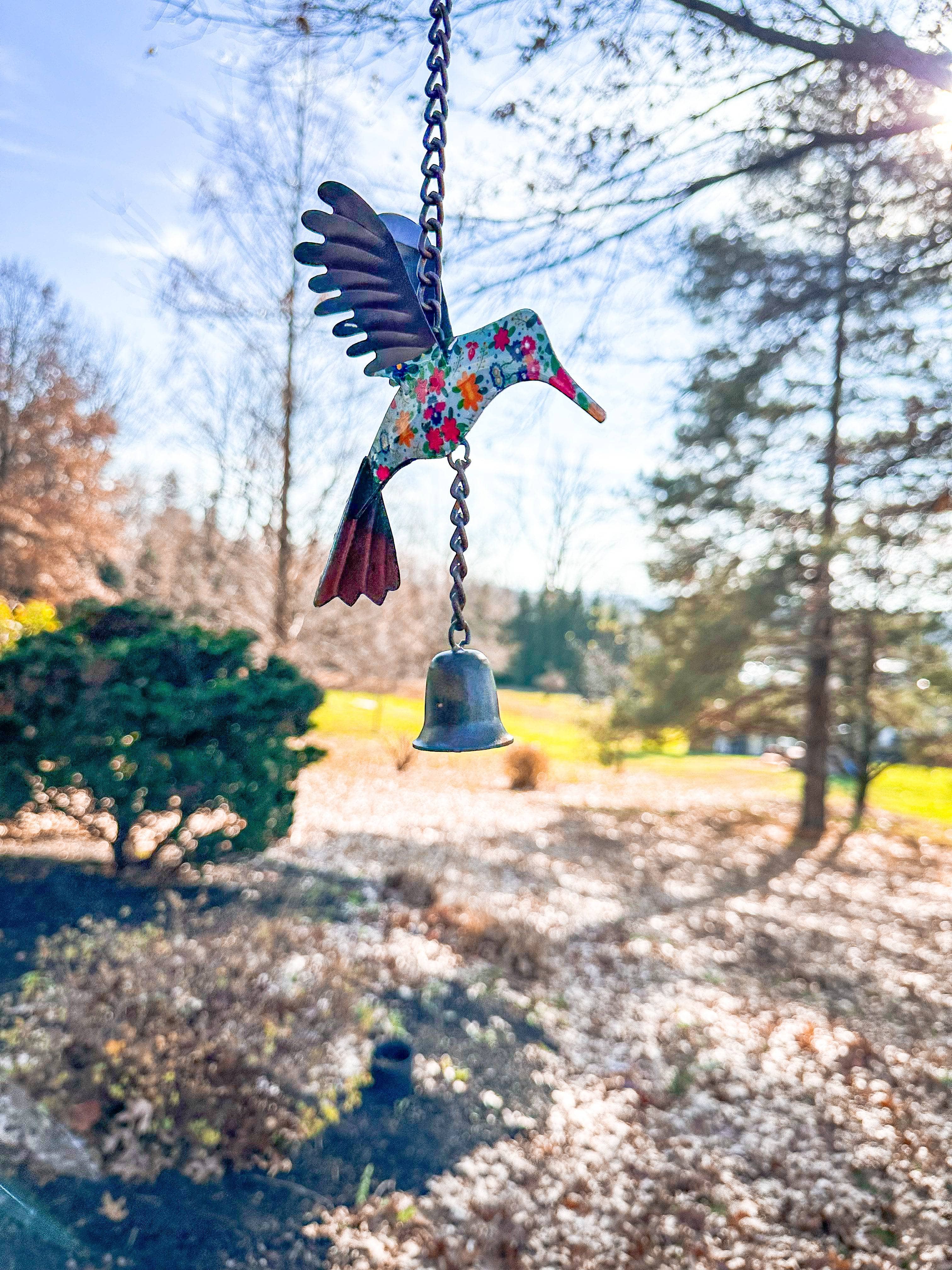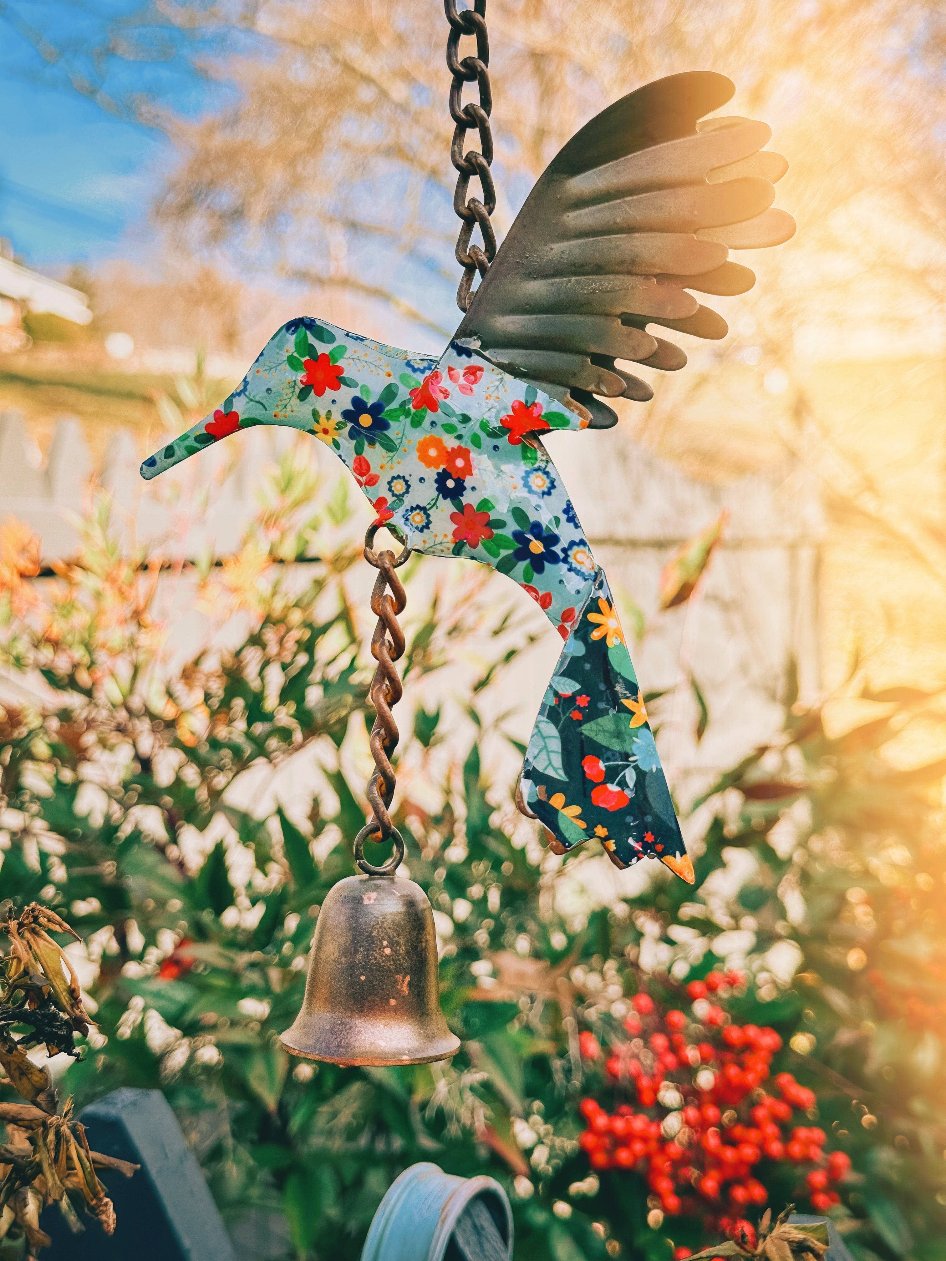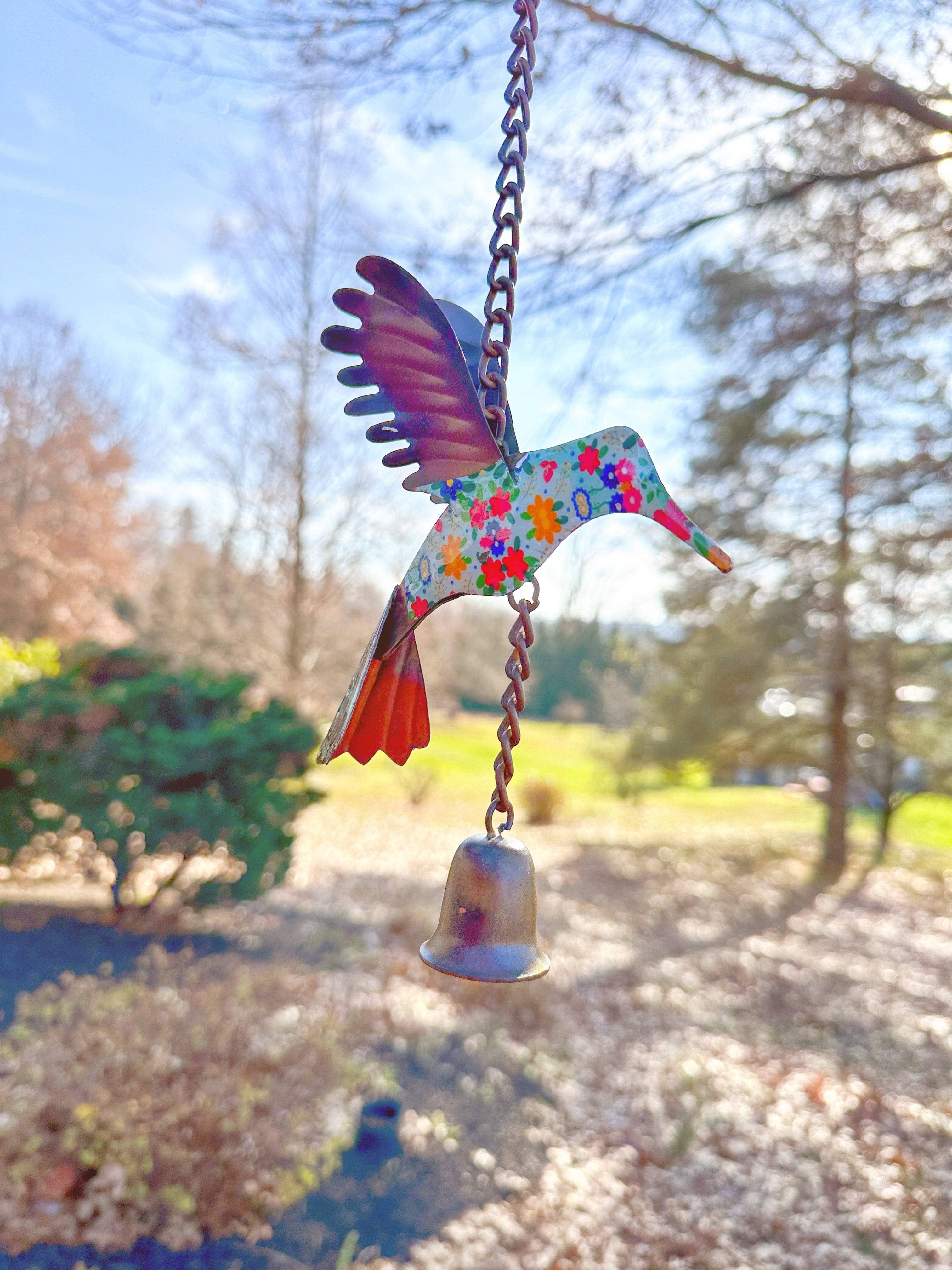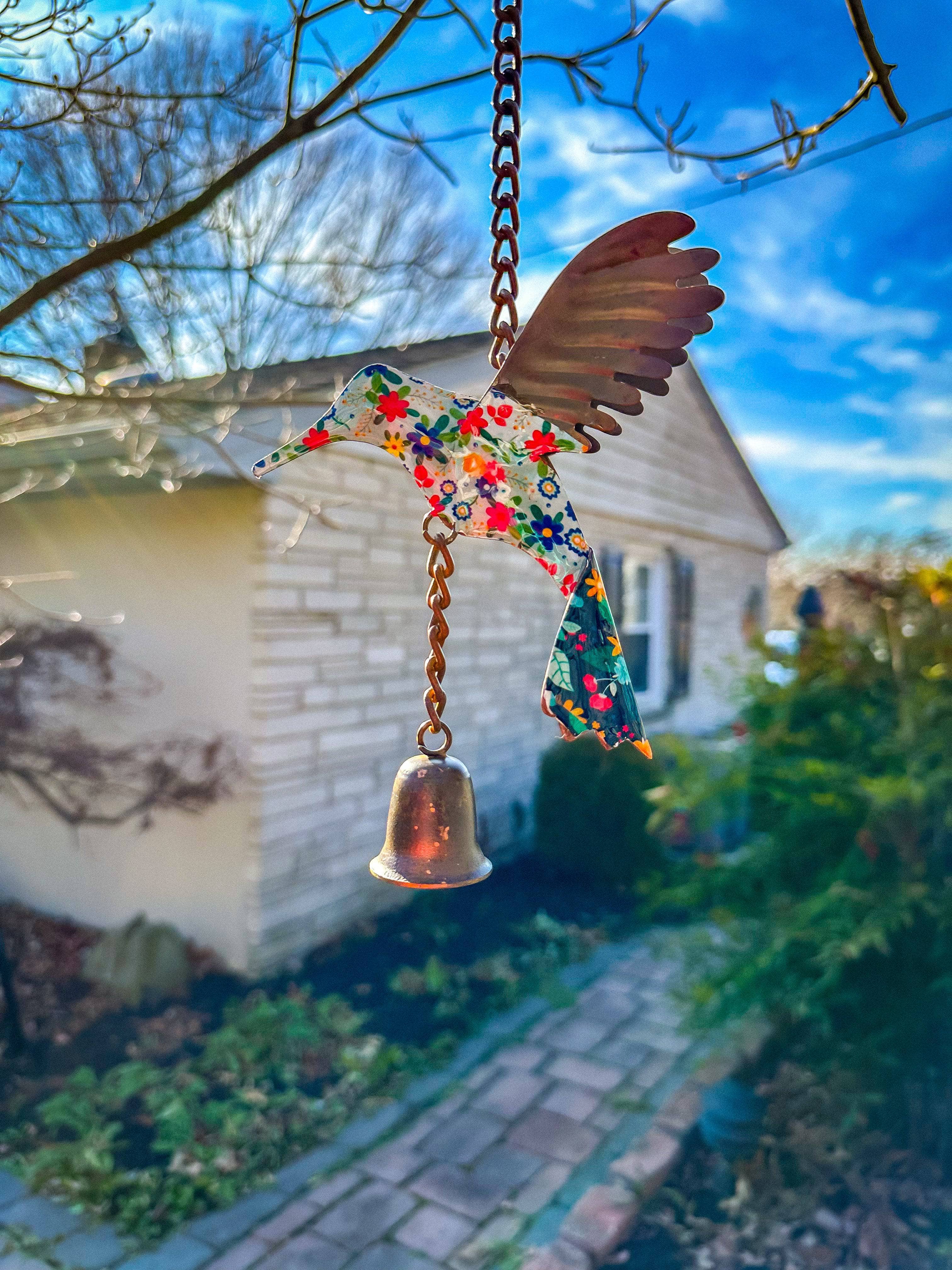 Add a punch of color to any outdoor space with this adorable floral hummingbird.