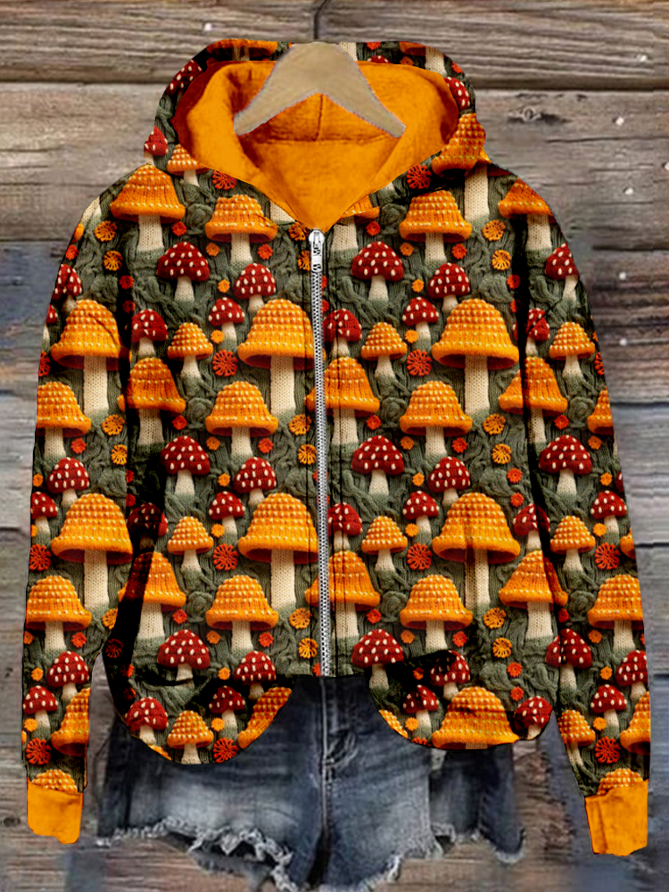• Floral Mushroom Embroidery Art Comfy Zip Up Hoodie