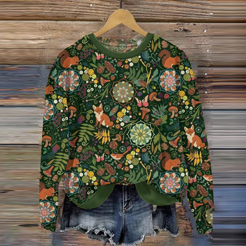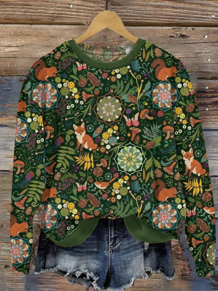 • Forest And Fox Art Printing Casual Round Neck Sweatshirt