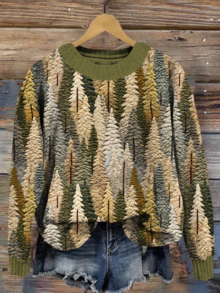 • Forest Embroidery Art Vintage Cozy Knit Sweater
