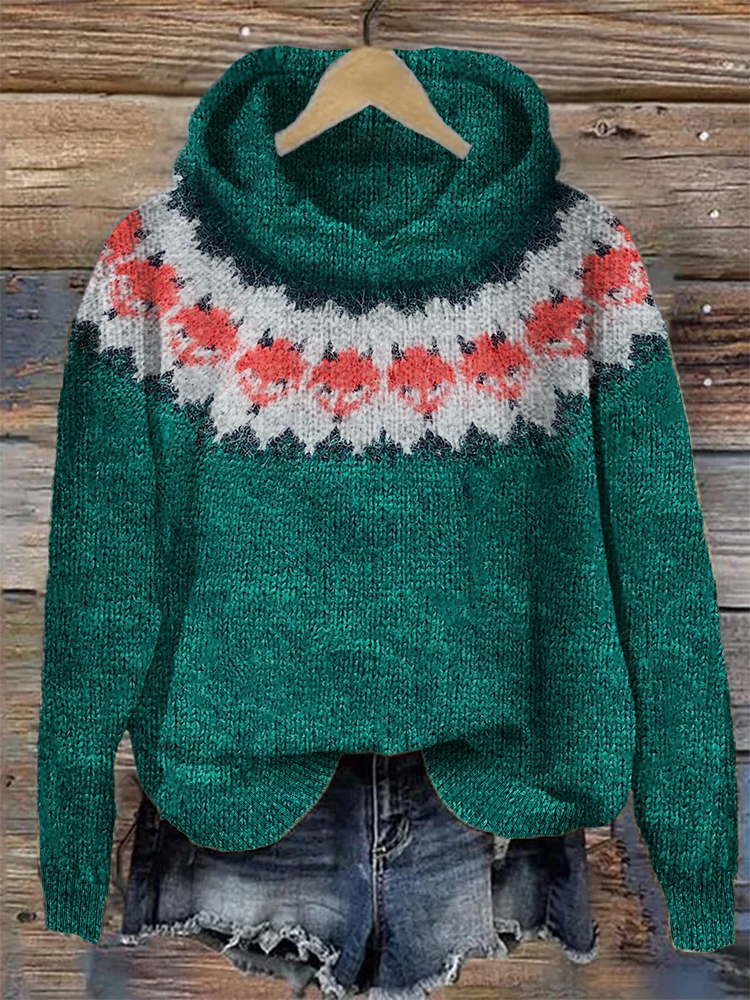 Forest Fox Inspired Cozy Yoke Knit Hoodie
