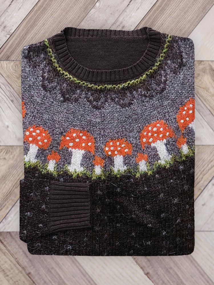 Forest Mushroom Inspired Cozy Knit Yoke Sweater