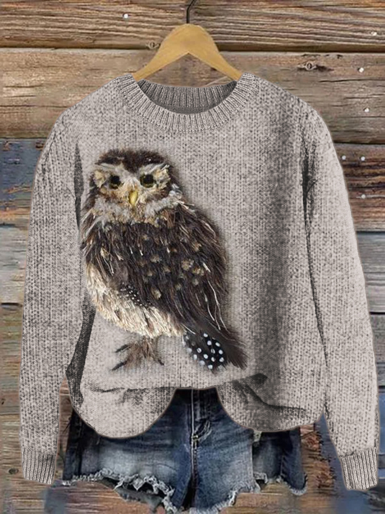 • Forest Owl Yarn Art Cozy Knit Sweater