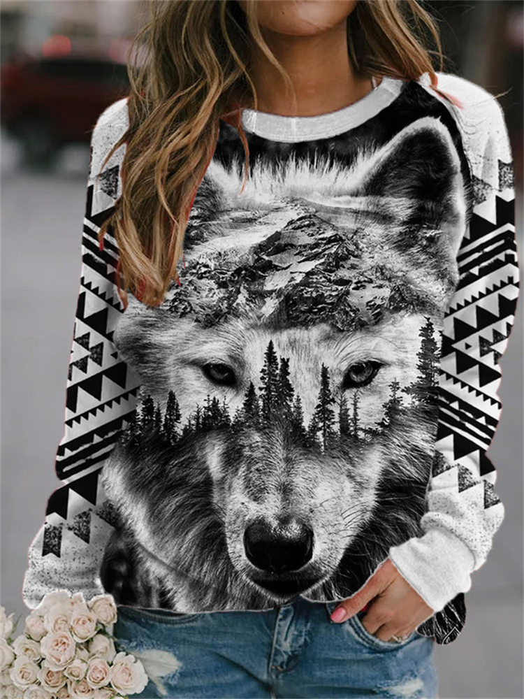 • Forest Wolf Art Aztec Patchwork Sweatshirt