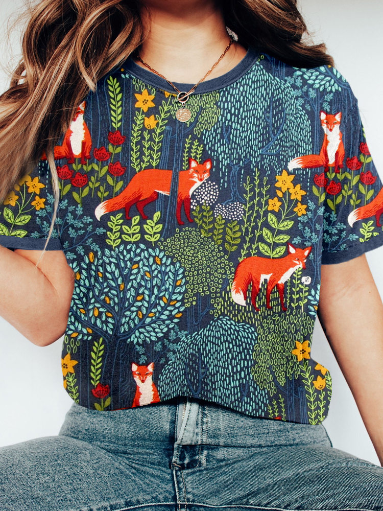 • Fox in the Forest Graphic Vintage Cozy T Shirt