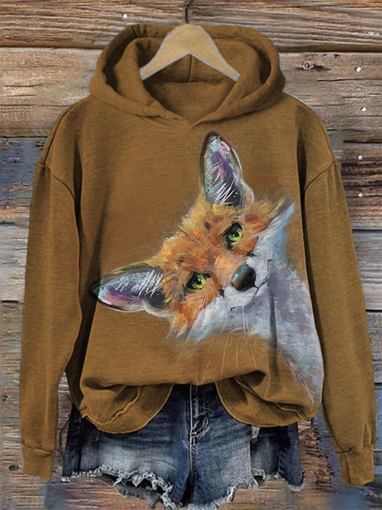 • Fuzzy Peeking Fox Painting Cozy Hoodie