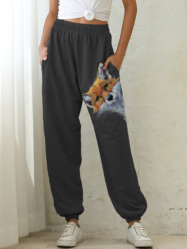 • Fuzzy Peeking Fox Painting Cozy Sweatpants