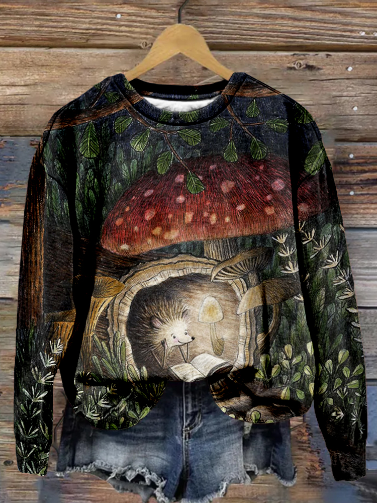 • Hedgehog Reading Art Graphic Comfy Sweatshirt