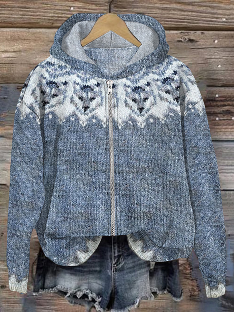 Iceland Dog Print Long Sleeve Zip Hoodie
