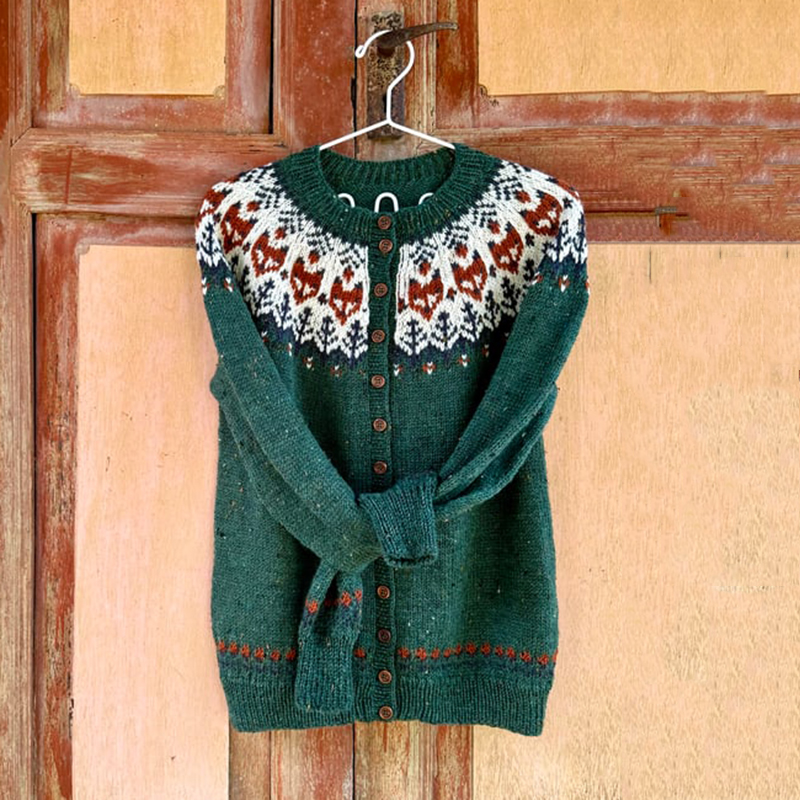 • Icelandic Fox Ethnic Print Long Sleeve Knitted Cardigan