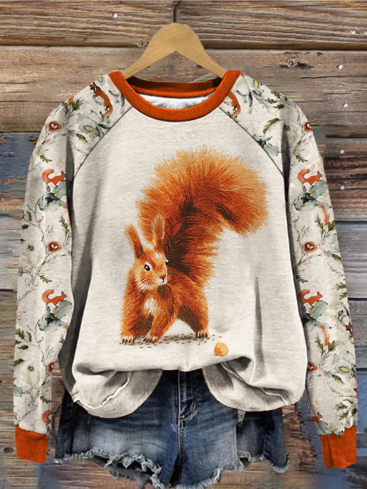 • Into The Woods Squirrel Embroidery Art Vintage Sweatshirt