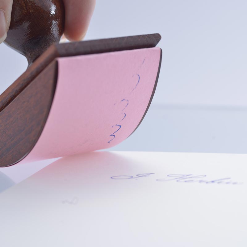 A rocker-style ink blotter from J Herbin. Rocker ink blotters have been around for centuries, and this classic design preserves the tradition. Blotting to absorb excess ink is a time-honored ritual of writing and provides that finishing touch to your handwritten correspondences. Fait accompli!
