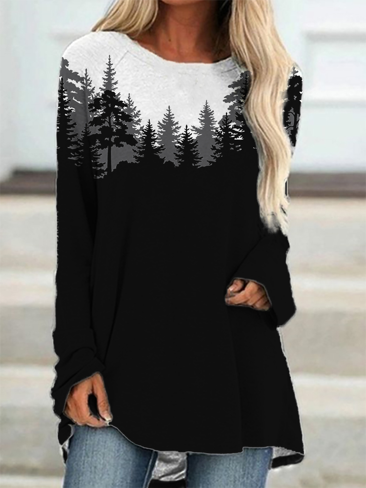• Landscape Forest Crew Neck Long Sleeve T Shirt