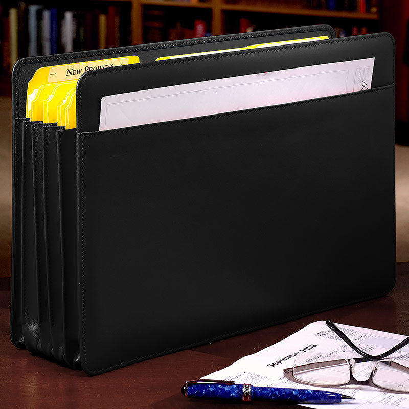 Our durable and elegantly professional leather accordion file in legal size. Upgrade your files to leather with this durable full-grain leather accordion file. Unlike the paper version, which wears out, the Leather-Rope® will wear beautifully and last for generations. A Levenger 35th Anniversary Heritage Product.