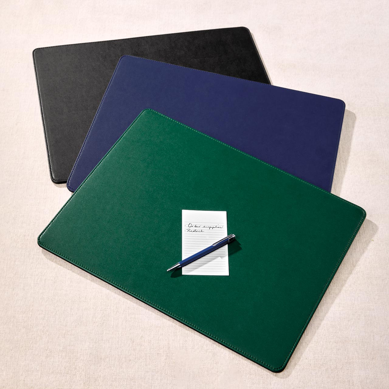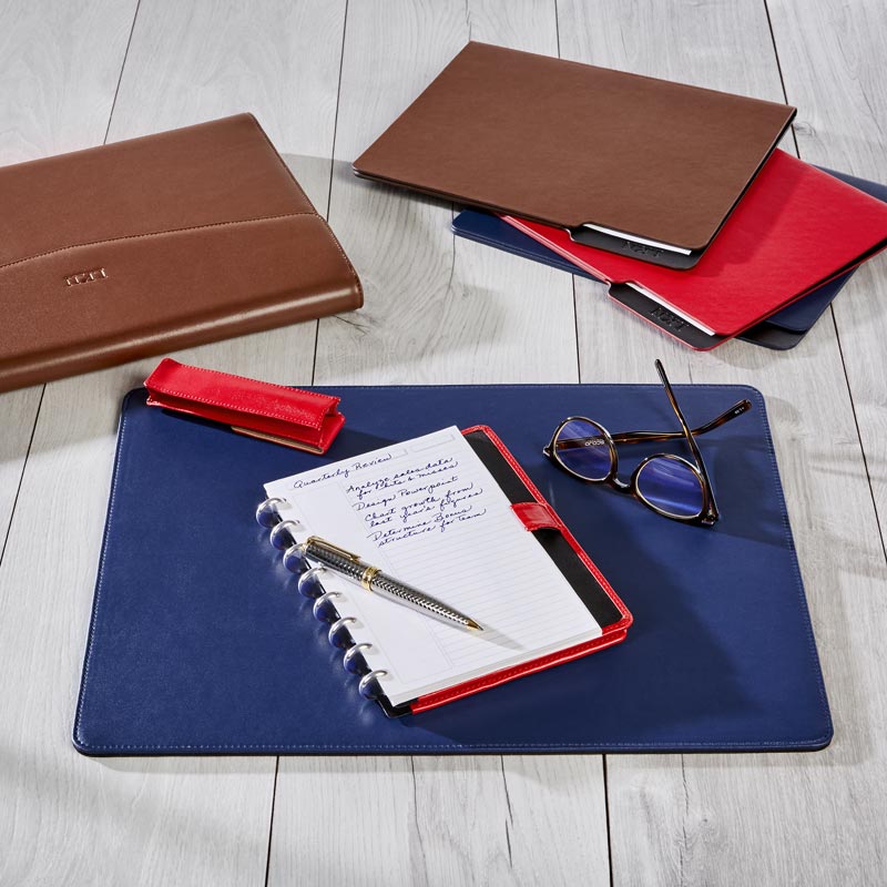 Smooth writing surface for compact office spaces. Made of our LevTex™ premium leather alternative, this desk mat provides a smooth writing surface or works as a conference pad for laptop users.