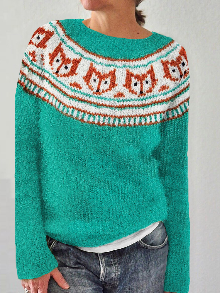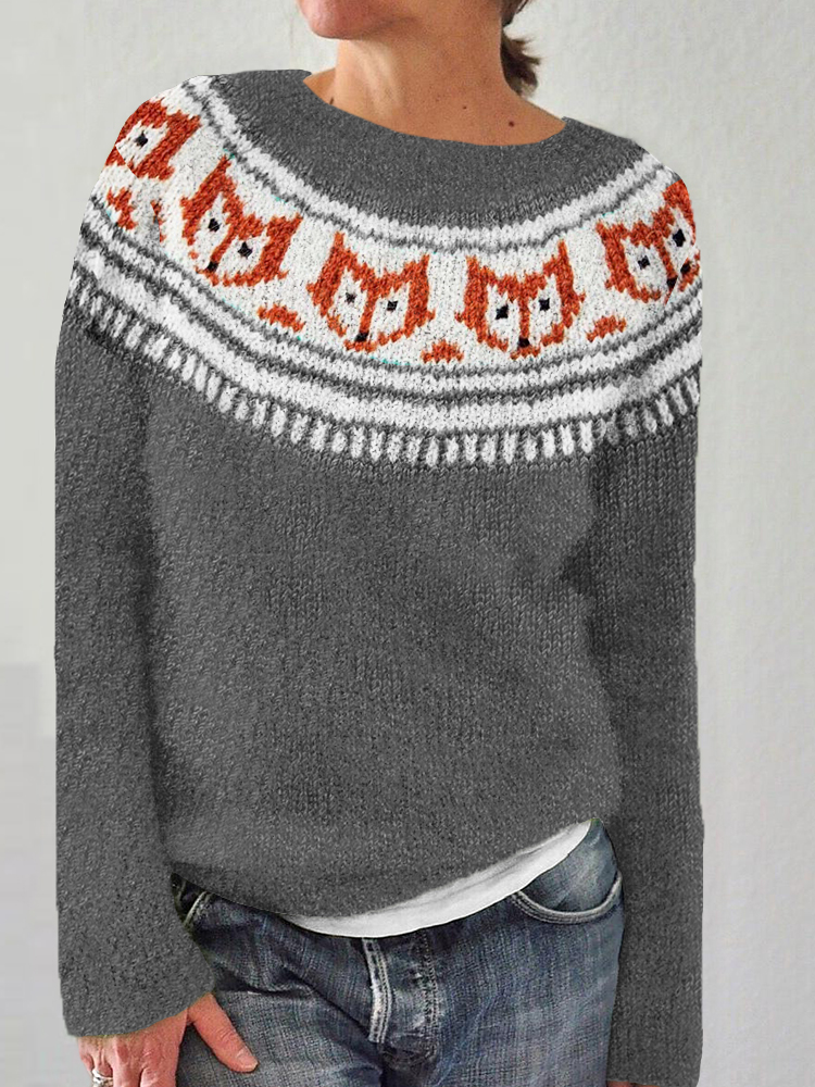 • Lovely Fox Face Knit Art Pattern Comfy Sweater