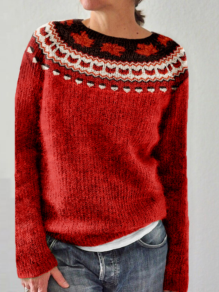 • Lovely Fox Face Knit Art Vintage Cozy Sweater