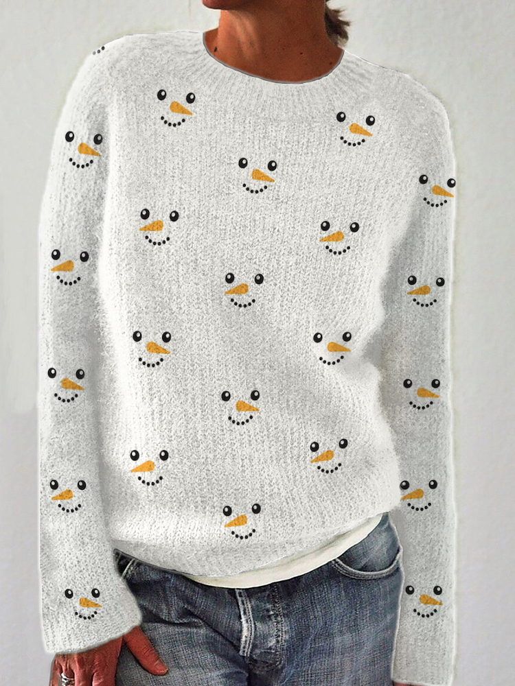 • Lovely Snowman Faces Pattern Cozy Knit Sweater