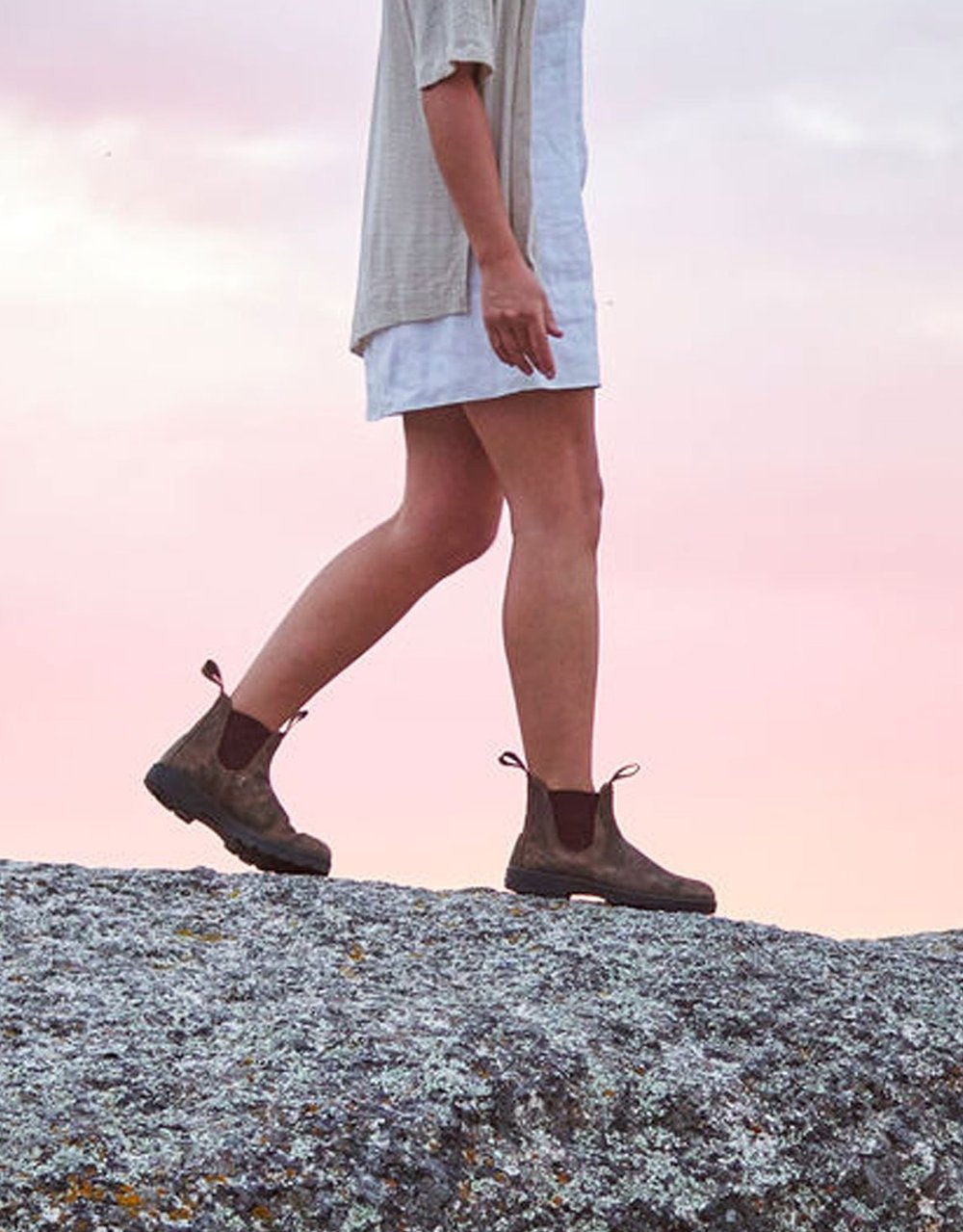 Blundstone #585 Classic Chelsea in Rustic Brown looks rustic yet refined, leather lined, feather light. Unisex Blundstone sizing.