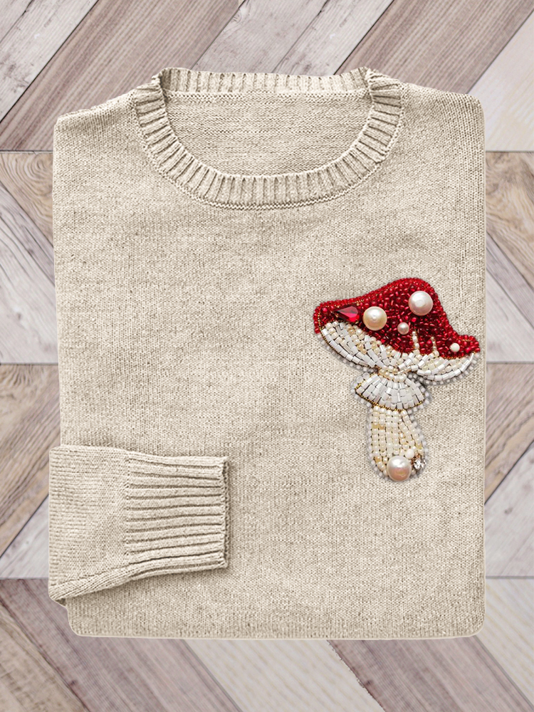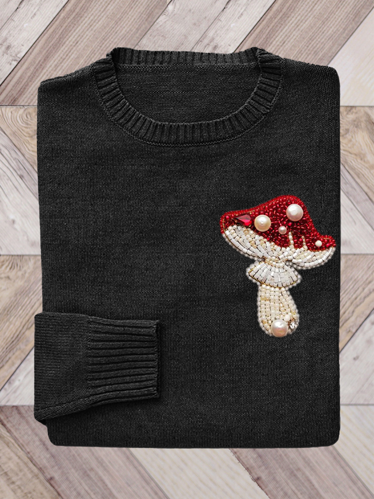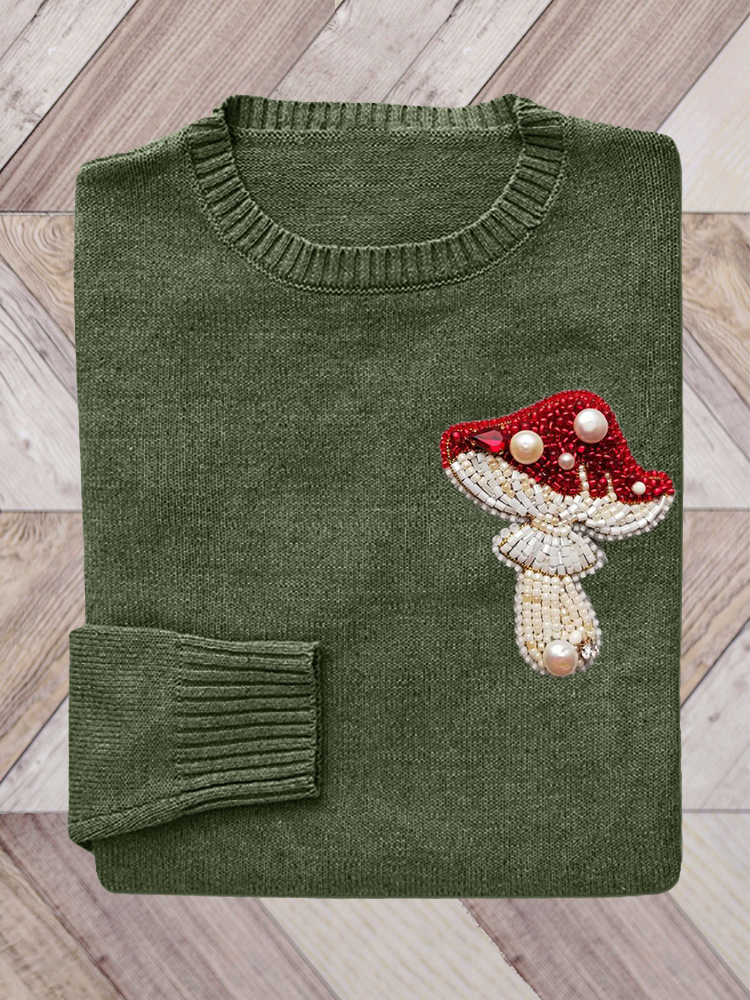 • Mushroom Jewelry Art Cozy Knit Sweater