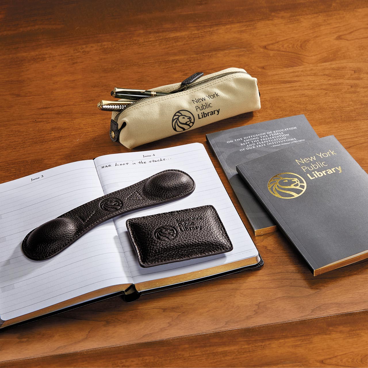 Since 1999, we’ve proudly partnered with the New York Public Library on a variety of products especially for readers. This waxed canvas pencil and pen holder, featuring the Library’s Lion logo and a quote by Daniel Webster, slips easily into a brief, bag or folio and keeps them organized and good to go. This handy pen case can hold up to 16 of your favorite writing instruments, with room to spare for ink refills, erasers and other small items. Pack it full—it’s expandable. As always, a portion of sales benefits the Library through our program.