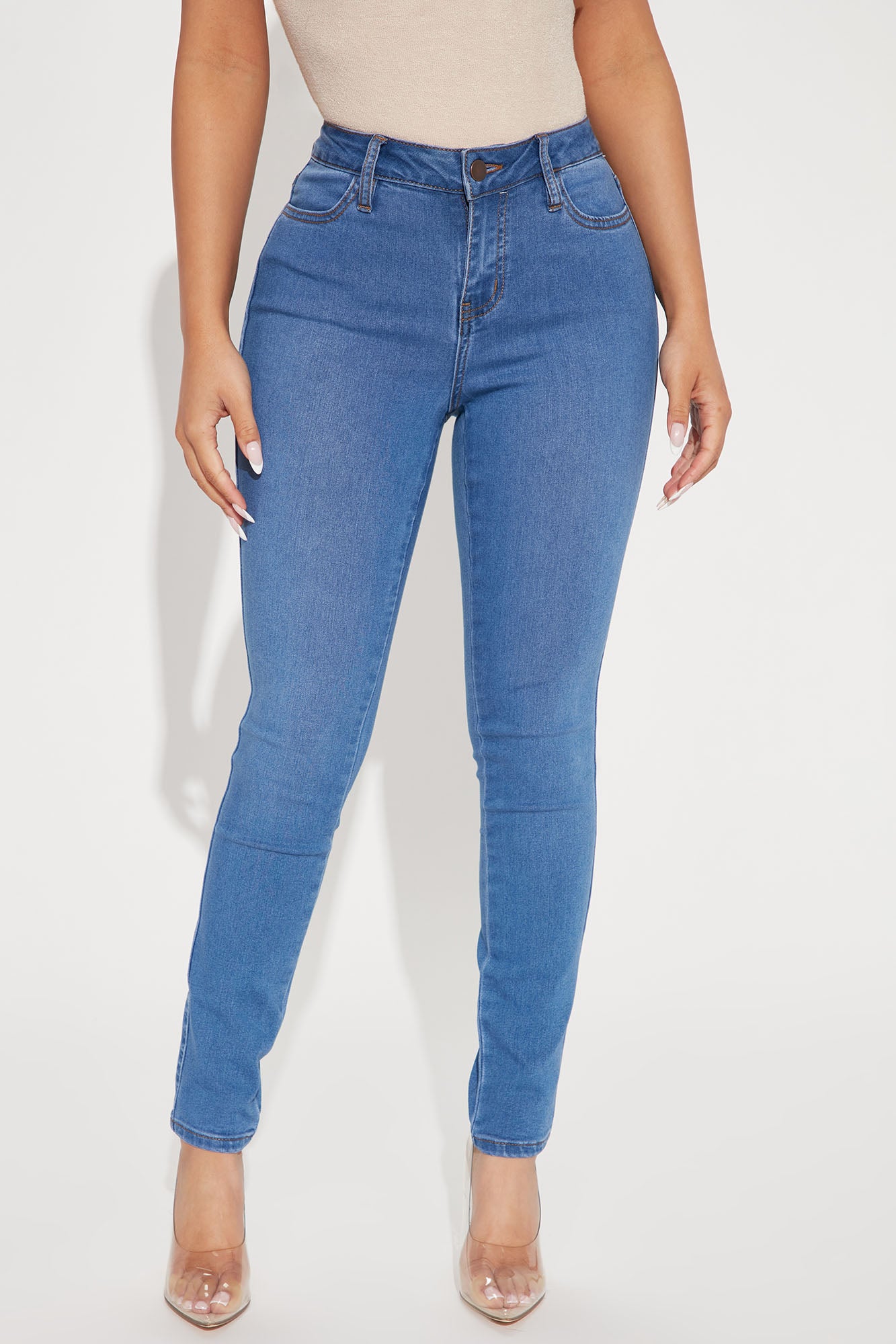 Mid-rise to the occasion! Transition seamlessly from day to night in our Medium Blue Classic Mid-Rise Skinny Jeans. Featuring a four-pocket design and mid-rise, skinny cut, this is a pair of denim you won't know how you ever lived without.