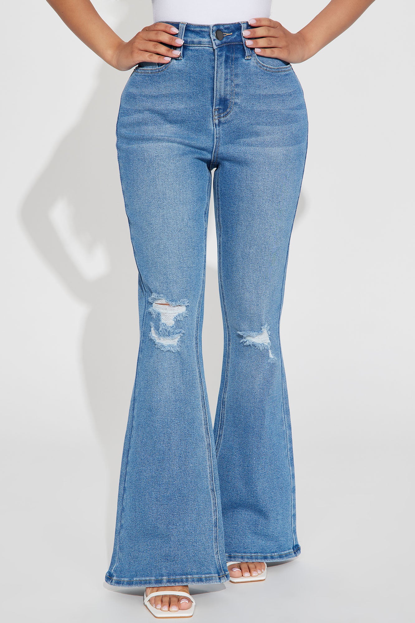 Petite Girl Bye High Rise Flare Jeans - Light Blue Wash