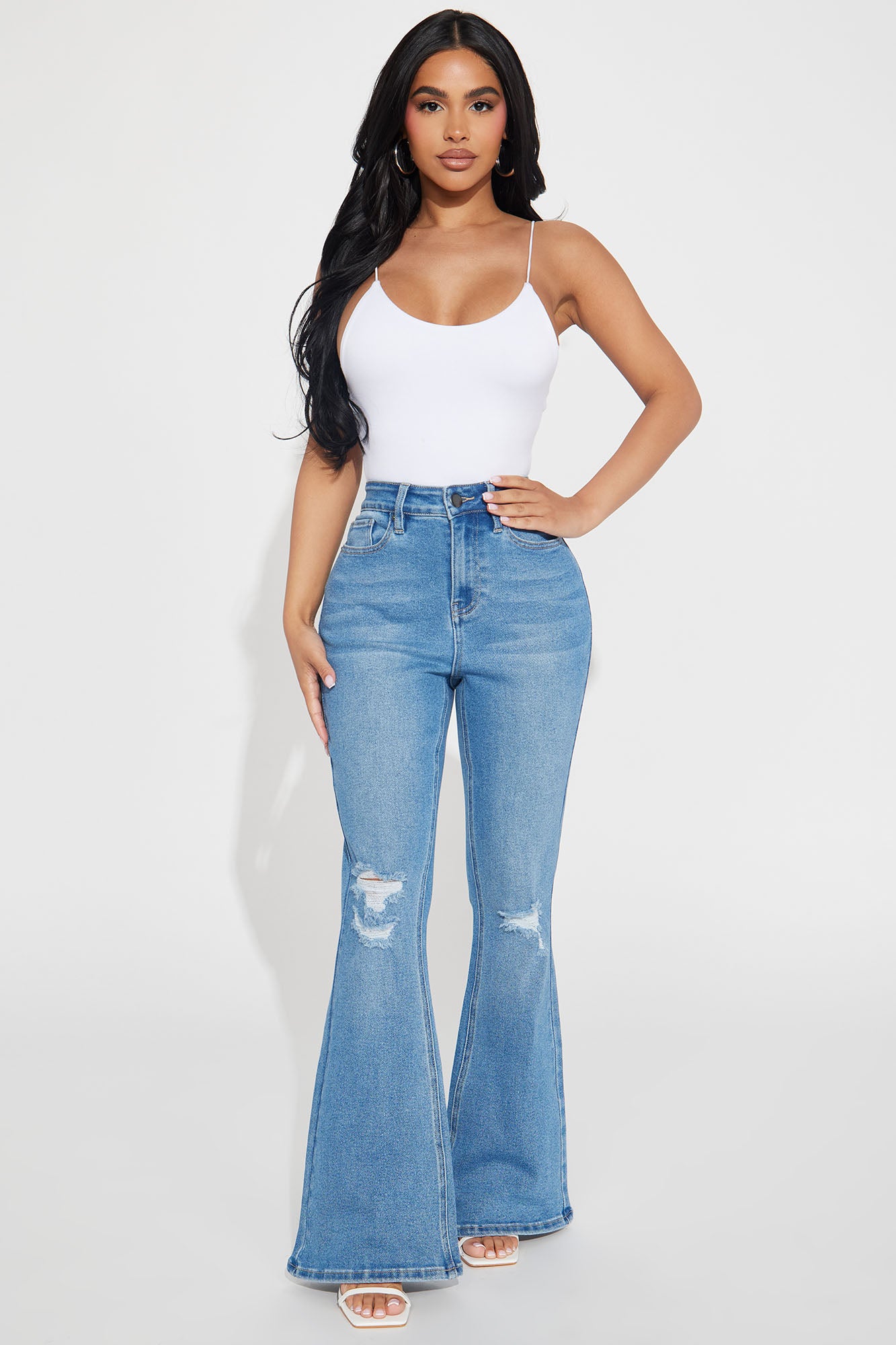 • Petite Girl Bye High Rise Flare Jeans - Light Blue Wash