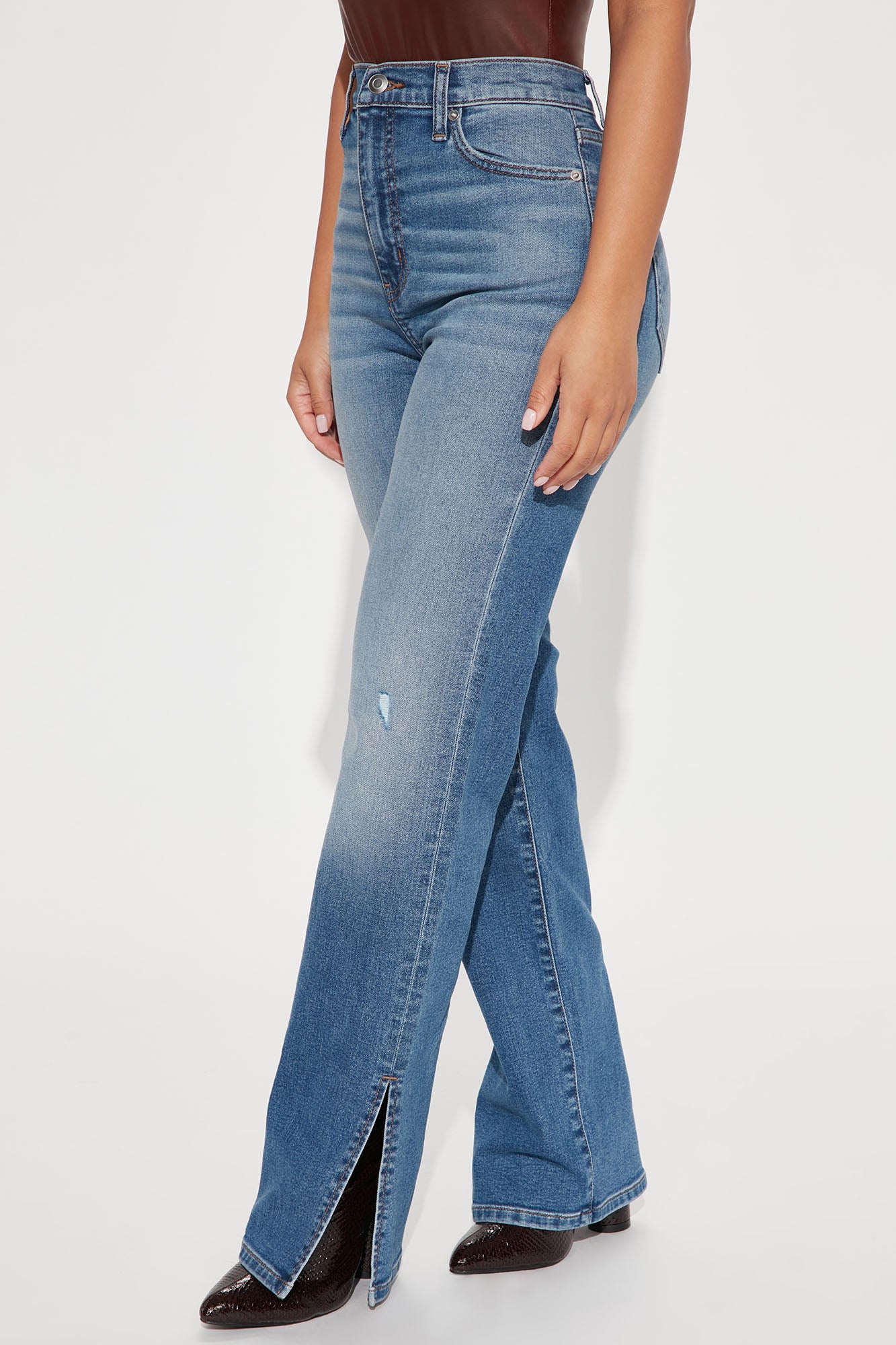 • Petite Killing 'Em Softly Side Split Jean - Medium Blue Wash