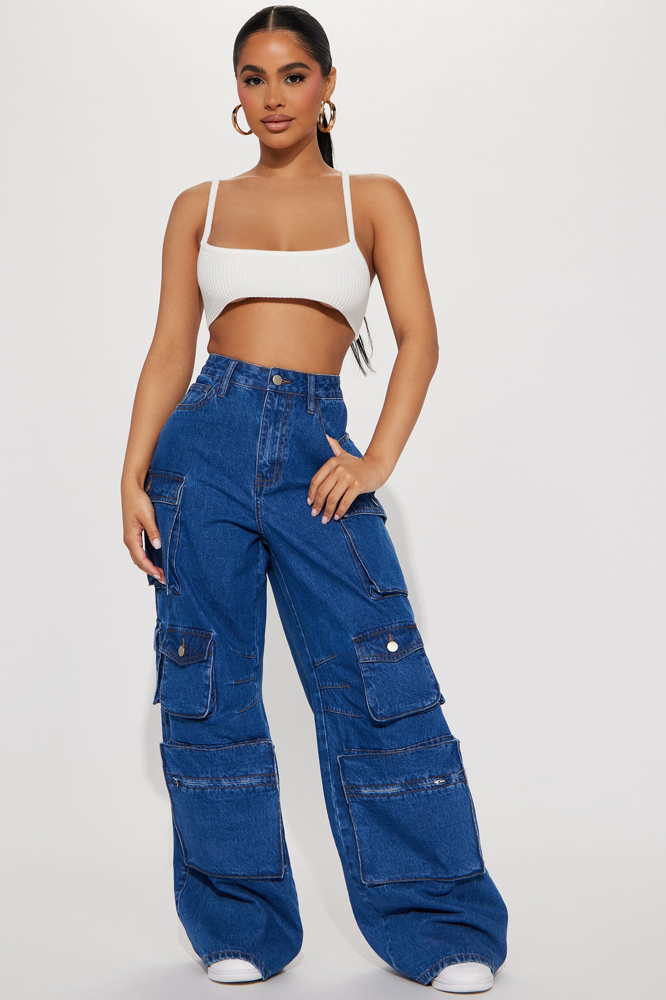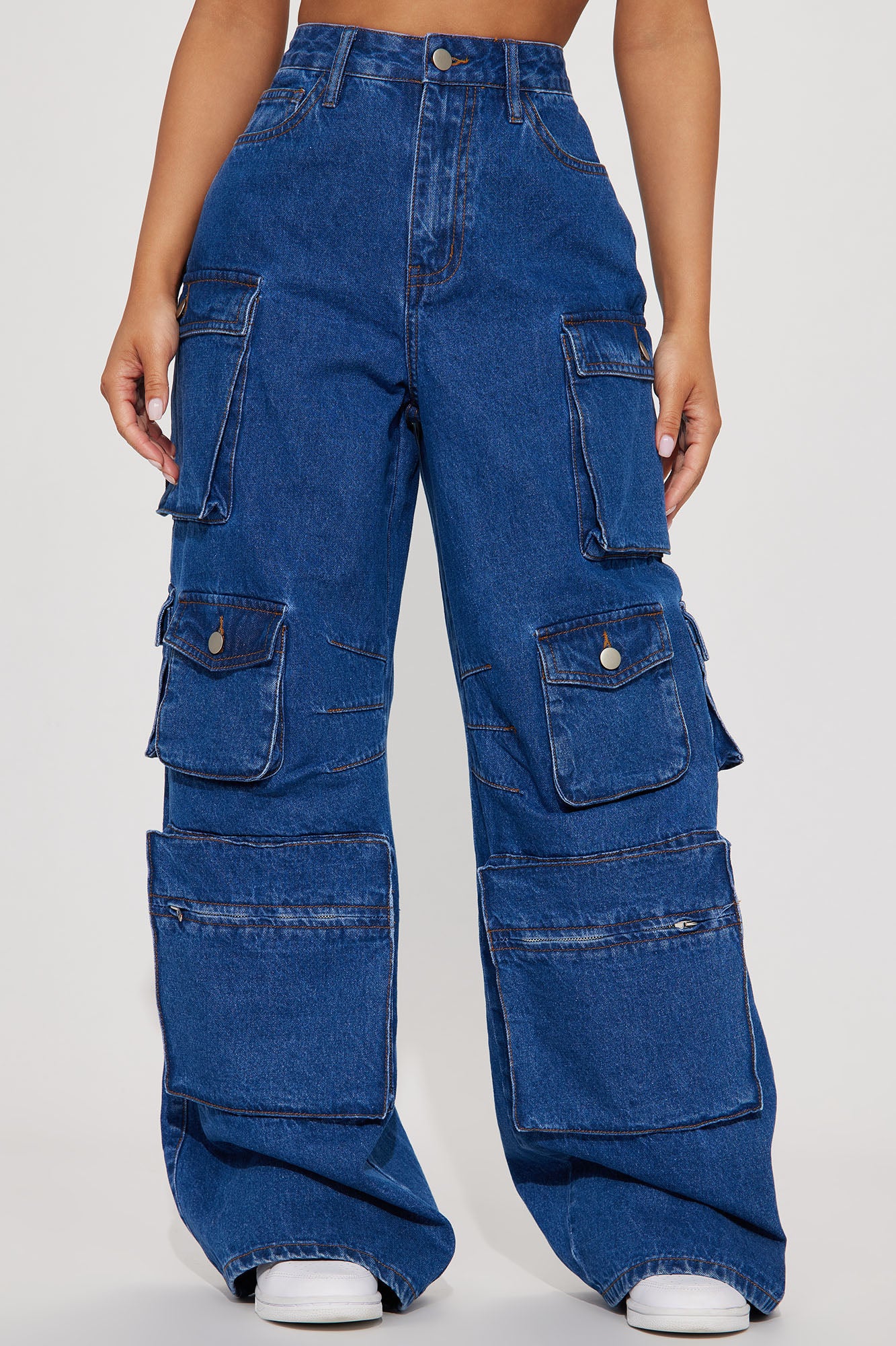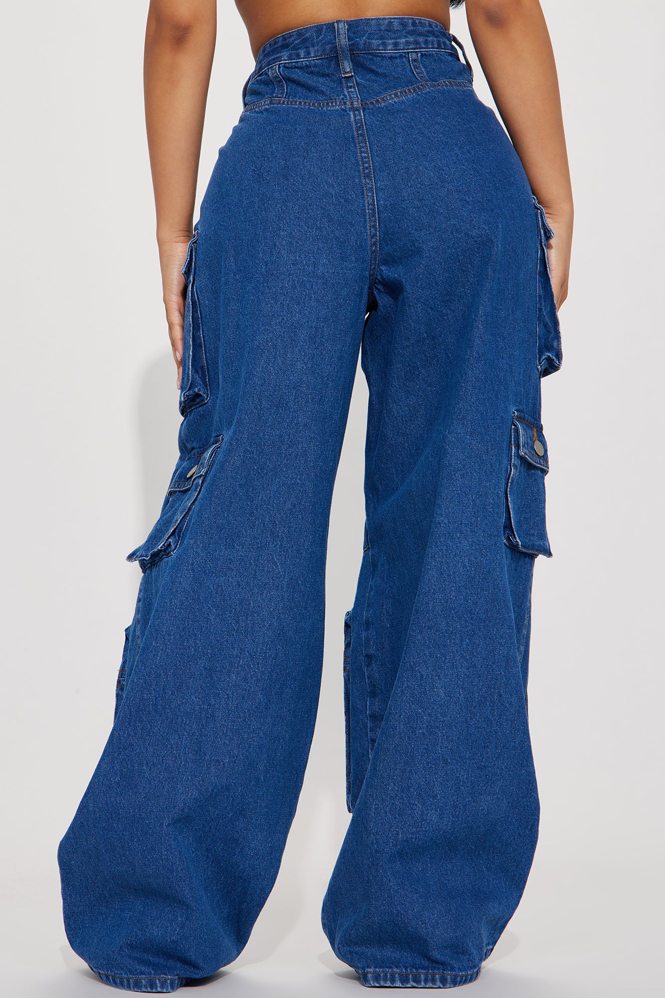 • Petite Lily High Rise Cargo Jeans - Medium Blue Wash